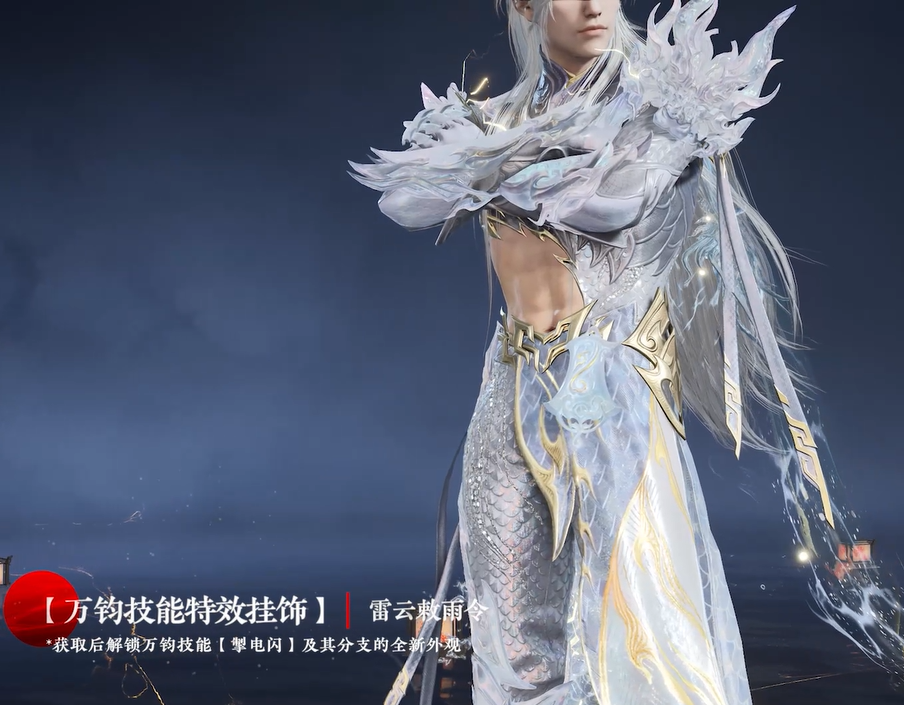 万钧全新特效挂饰 捆绑包即将上线 技能、奥义特效挂饰捆绑包 【辰龙·万钧】 原价6800金块上新价3900金块! 内含万钧技能特效挂饰、奥义特效挂饰 水波荡漾! 万钧技能特效挂饰召雷唤雨 万钧技能特效挂饰【雷云敕雨令】 解锁后将获得万钧技能【掣电闪】及其分支的全新外观 “传闻携此令至干旱之地会降雷催雨,滋润万物。” 挂饰 外观 一块雪白的令牌悬挂在万钧腰间。令牌上的龙形图腾神秘威严,让人敬畏。 F1特效展示 万钧爆发水元素光波,周身雷霆流光环绕。 F2特效展示 万钧抛出万雷枪,瞬身取枪并斩出波涛。 化身为龙! 万钧奥义特效挂饰白龙真身 万钧奥义特效挂饰【辰龙坠】 解锁后将获得万钧奥义【万雷铸身】及其分支的全新外观 “化身入水的白龙裹挟着碾碎万物的威视,震慑了整个汪洋” 挂饰 外观 一个精美的吊坠悬挂在万钧腰间。吊坠上的龙头光彩流溢,下面波涛点缀,更添华贵感。 奥义外观 当万钧引动奥义,白龙的魂灵将撕裂雷霆,与之血肉相融,原本的雷主化身掌控汪洋的白龙真身。 站立展示 通体覆盖冰裂质感的蓝白鳞甲,肩脊与额头处生长出峥嵘的苍玉龙角,瞩目的龙尾不断拖曳,枪身电光环绕。 普通攻击 万雷枪挥出浪潮摆尾,伴随电弧的特殊光效,仿佛海洋之主。 处决攻击 万雷枪携汪洋之威将敌人插入漩涡中,召唤万千雷枪一同处决,终结一切于水波中。 空中平击下落攻击 白龙跃起,执长枪携雷霆下劈。 空中纵击下落攻击 白龙高高跃起,引浪潮之力重击前方。 闪避特效 伴随滋滋雷响,闪避过程中留下虚影并伴随湛蓝拖尾。 V1开启后特殊F技能 按F抛出万雷枪形成龙角雷眼,扩散阵阵雷波,为敌人施加雷痕。 V2开启后特殊F技能 按F抛出万雷枪可千里索敌,以雷珠为核心,再次按F可传送至枪身位置。 V2开启后特殊F技能与队友交互 万钧视角 队友视角 万雷枪可与队友交互,形成绝妙配合。 |