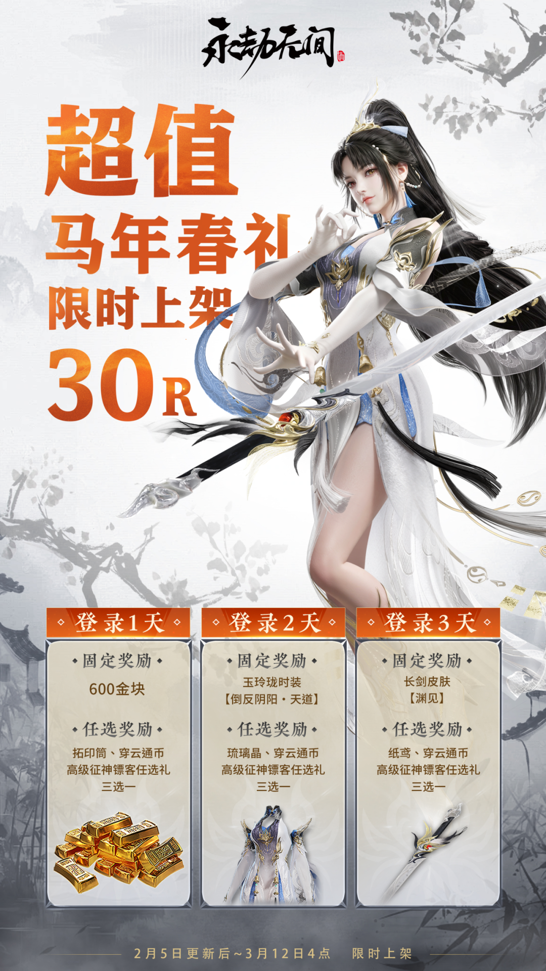 【倒反阴阳】系列外观2月5日上新 赤狐无尘,道士玉玲珑登场! 无尘极品时装【倒反阴阳·狐踪】通过开启新春宝灯解锁,玉玲珑极品时装【倒反阴阳·天道】则通过“马年春礼”获取! 获取时装后,将自动解锁对应专属语音包!在另一个时空中“交换身份”的无尘和玉玲珑又有着什么样的羁绊呢?今天劫宝就为大家带来详细爆料! 倒反阴阳系列外观上新! 超值马年春礼仅售30元 2月5日更新后~3月12日04:00 仅售30元的超值马年春礼将同步上架游戏与抖音官号旗舰店! 购买后第一天即可领取600金块返利及自选奖励三选一!登陆第二天可领取玉玲珑极品时装【倒反阴阳·天道】,第三天就能带走长剑极品皮肤【渊见】,返利比超750%! 玉玲珑【倒反阴阳·天道】 购买“马年春礼”获取 真气凛然卜卦象,天道无形在心间 【倒反阴阳·天道】细节展示 洞悉万物 端庄严肃 象征着隐族使者身份的玉冠将部分长发束起,珠链与流苏的装饰尤为精致。少女的神情七分自信,三分轻蔑。 *玉玲珑极品发型【倒反阴阳·绝尘】原价800金块,上新价600金块。 玉玲珑极品挂饰【倒反阴阳·玄玉冠】通过揽月阁消耗240玉盘兑换获取。 白袍轻纱 清冷潇潇 白色道袍的袖摆、下摆均采用薄纱材质,运用烫金工艺将八卦图纹印制在束带、衣摆间,周遭若隐若现的真气形成一道仙环,清冷无比。 鹤羽佩剑 朱红玛瑙 剑柄剑鞘均有黑白鹤羽装点,其上镶嵌的朱红宝石闪烁着熠熠光辉,剑刃纯净洁白,一旦染血,更为醒目。 *玉玲珑极品时装【倒反阴阳·天道】,配套的长剑极品皮肤【渊见】均为解锁马年春礼获取! 玉玲珑·倒反阴阳 ?语音包 获得时装后自动解锁! “隐族使者,玉玲珑。” 隐族使者,玉玲珑。,永劫无间,2秒 玉玲珑展示背景【倒反阴阳·鹤归】 原价200金块?上新价160金块 玉玲珑展示底座【倒反阴阳·修心池】 原价400金块?上新价300金块 书简垂落,白鹤飞过。平心静气,则道法自通。 ? 怎么有一抹红色溜了过去?原来有只赤狐也跟来了!无尘倒反阴阳系列外观将同步登场,一起来抢先看看! 赤狐无尘同步登场! 开启新春宝灯获取 无尘【倒反阴阳·狐踪】 开启新春宝灯获取 流火赤影狐踪现,寻欢作乐游人间 【倒反阴阳·狐踪】细节展示 狐面俊俏 潇洒自在 比他那一头赤红长发还要引人注目的,是他俊俏无比的玉颜。毛绒狐耳时不时颤动,令人心生怜爱。 *无尘极品发型【倒反阴阳·恣意】原价800金块,上新价600金块。 翩翩如玉 流焰赤影 以黑色内衬为底,长衫主打青白配色,衣摆处有烫金流焰纹样,是华贵身份的象征。 绒尾似火 恣意无间 肩上的赤狐陪伴他许久,传闻是这位“公子”的本体。带有金色光华的毛绒大尾巴,谁看了不想rua一下? *无尘极品时装【倒反阴阳·狐踪】,无尘极品挂饰【倒反阴阳·赤狐耳】、【倒反阴阳·赤狐尾】均为开启新春宝灯获取! 无尘·倒反阴阳 ?语音包 获得时装后自动解锁! “救世当然重要,但找乐子更重要~” 救世当然重要,但找乐子更重要~,永劫无间,3秒 不止无尘时装,还有更多精美外观!劫宝后续会给大家带来详细的新春宝灯爆料,敬请期待! 无尘展示背景【倒反阴阳·狐现】 原价200金块?上新价160金块 无尘展示底座【倒反阴阳·碧玉灵】 原价400金块?上新价300金块 赤狐早已与少年融为一体,天生顽性难抑,不如纵情作乐! |