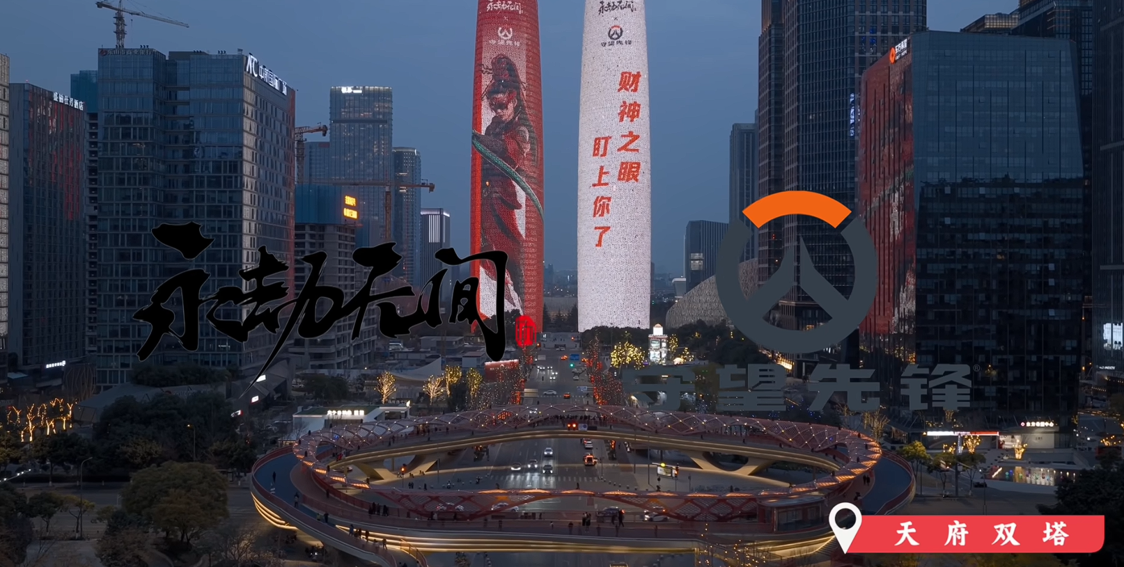 新春已至,永劫无间与守望先锋的英雄们,在成都双子塔上为大家拜年 双子塔下,永劫与守望的玩家也相聚在一起,共同喊出我身无拘,武道无穷! 劫宝在此祝全体玩家新年把把天选,场场最佳! 、 |
