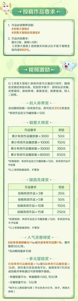 灵兽大冒险启灵测试创作激励来袭!最高赢1800现金奖励!