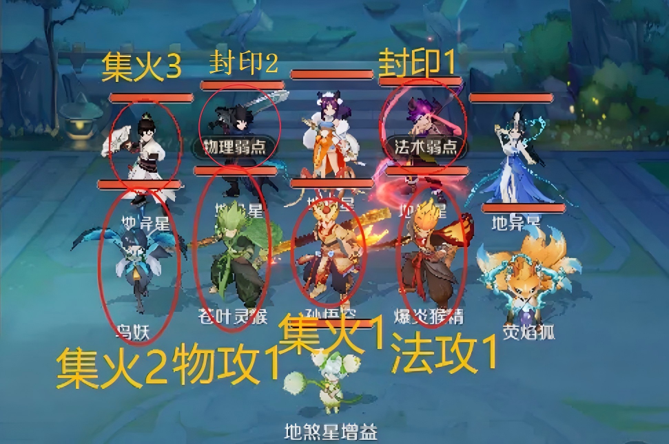 本期鸟收到了来自@讲道理 热心玩家的投稿 为大家细细讲解一下 地煞星几大阵型打法! 快一起来看看吧~ 注:玩家投稿内容,仅供灵兽师大人们参考,不代表官方立场~ 如果你对攻略内容有独到的见解,欢迎在评论区给我们留言,也欢迎直接向我们投稿哦! 地煞3~5星攻略 地煞 3~5星有三种类型,分别为鸟妖的协同追击、孙悟空的集火击杀、鲤鱼精的回合末护盾。 常规阵容:方寸、盘丝、地府、蛮岳、天宫 开荒阵容:方寸、方寸、地府、蛮岳、天宫 低星挂机阵容:方寸、地府、蛮岳、天宫、天宫 孙悟空打法 通关攻略 孙悟空击杀单位会召唤小怪,孙悟空单体爆发非常高。封系速度非常快,一般不建议封方寸,可以控制输出。 孙悟空打法 战斗首回合孙悟空会标记目标,队伍有地府,地府释放幽冥镜台进行反伤即可,开局地异星方寸速度较快,常规情况下没办法封印对方,就集火输出,随后封印地府,盘丝防止回血,孙悟空被击倒会有高额物理躲避,需要法系补刀,后续法系守尸。 其他单位根据目标物理或者法术弱点进行击杀,最后根据场所单位气血情况进行逐步击杀。 鸟妖打法 通关攻略 鸟妖开局唯一要求就是击杀中间九凤鸟妖,只要鸟妖被击杀就过了一半。 鸟妖打法 开局盘丝兽王神力拉攻击,集火点杀九凤鸟妖,随后第二回合集火秒方寸,封印方面先封奶妈,2封盘丝,天宫对九凤鸟妖进行守尸。 第一回合一定要击杀你九凤鸟妖,不然第二回合协同伤害能秒人。 九凤鸟妖倒地后,法系控尸体,物理与法系宠物按照弱点进行逐步击杀,最后根据血量进行不同单位击杀 鲤鱼打法 通关攻略 中间的鲤鱼精在回合末会增加护盾高额减伤,注意不要打带护盾的单位,防止伤害被抵消。 鲤鱼打法 开局首回合击杀鲤鱼精,随后集火方寸,封印方面,需要封印双地府,确保鲤鱼不会尾速拉起,给怪物套盾,最后根据弱点情况击杀两只狐狸,这里狐狸被攻击会增加攻击,需要集火处理,遇到变身的狐狸优先集火击杀,然后根据气血情况进行补刀击杀。 地煞6星攻略 地煞 6星有三种类型,为精卫、黄金兽、麒麟,6星新类型难度相较于原先的3星地煞打法有所改变,但是了解战斗方式,也是可以轻松通关。 常规阵容:方寸、盘丝、地府、蛮岳、天宫 开荒阵容:方寸、方寸、地府、蛮岳、天宫 低星挂机阵容:方寸、地府、蛮岳、天宫、天宫 黄金兽打法 通关攻略 1、黄金兽与白金兽会释放技能降低目标双攻并叠加物攻提升增益效果 2、黄金兽或白金兽首次倒地时,会将当前气血最高的黄金兽或白金兽进化为王兽,进化的王兽会继承倒地黄金兽或白金兽的增益层数 3、场上的进化王兽与青钧会集火同一个目标,若造成击倒,则会召唤一个小黄金兽眷属 黄金兽打法 黄金兽这一关是大家公认的三种当中比较简单的一关,如果开荒的话优先刷这一关。 首回合击倒青钧,然后控制青钧,不要让青钧击倒任何单位,不然会召唤小黄金兽越打越多。 后续当中物理打黄金兽,法术打白金兽,根据情况进行补刀输出即可。 精卫打法 通关攻略 1、仙鹿会释放恢复或净化技能,恢复与净化的同时会强化友方目标 2、鸟妖会概率进行协同攻击 3、当场上持有血祸的单位超过3个时,精卫会尝试引爆血祸造成大量伤害 精卫打法 首回合击倒银宵,物理职业配合一个输出宠物就要可以击倒精卫,当回合可以达到双杀,如果银宵没死亡,回合末会复活精卫,精卫伤害非常的高,通关要点就是首回合击杀银宵。 后续回合击杀和控制精卫,然后可以持续攻击鸟妖,有残血单位进行补刀即可。 麒麟打法 通关攻略 1、风雷麒麟与异色风雷麒麟每回合都会尝试进行合击 2、落单的麒麟会根据自身状态释放小合击 3、场上左右各一组麒麟,单组麒麟需要同时击杀,否则回合未倒地的麒麟会复生并恢复气血 4、鲤鱼精会释放强力减伤水盾技能 麒麟打法 麒麟第一种打法,第一回合左边逍遥生会封印、右边俏千金开局会释放群毒,首回合击杀灵昭,灵昭会给其他单位附加大量减伤,然后左右为两组麒麟,合击伤害非常的高,每一组麒麟都要同时击倒才能死亡,不然会复活。同时击倒和控制两组麒麟然后进行补刀其他单位。 麒麟第二种打法,首回合击杀灵昭,然后优先控制前排两组麒麟中的一只,打断合击效果,后排人物非常的脆,可以轻松击杀,然后控制麒麟同时击杀两组麒麟即可。 |