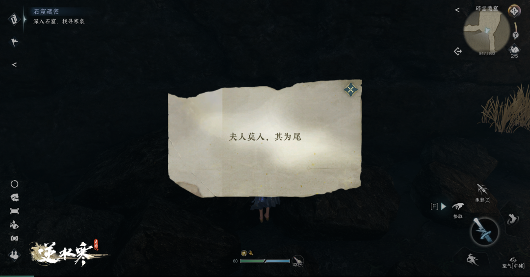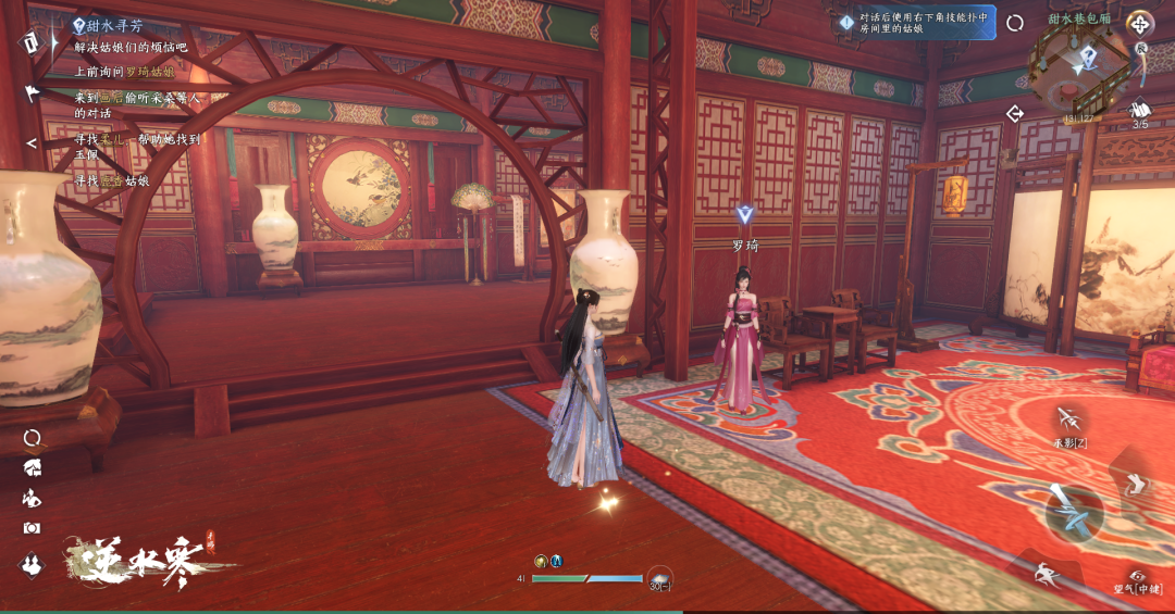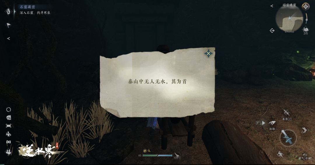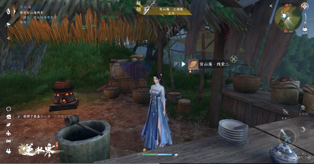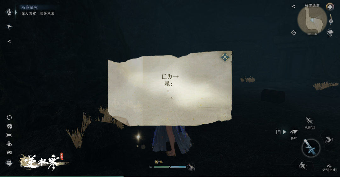 随手捡东西这个习惯,武侠片的主角一般都有! 你看,电视剧逆水寒里随手捡来的破书,就能让绝世大侠看的汗毛竖起,引为知交! 这个习惯用在咱们逆水寒手游开放世界里也完全没毛病,你永远都不知道自己随便捡到的哪个东西,随便做的哪个动作,随便和哪位NPC聊句天,就有可能在江湖上搅动风云—— 有的同门在雁门关前随手为已逝的将士上了一炷香,直接触发了藏宝图所在的机关,机缘巧合下习得了江湖绝技;有的同门只是在杭州看人多凑热闹去听说书人讲故事,结果没想到亲身参与其中,获得了江湖难得一见的独珍装备。 您不经意的一个动作,就有可能在江湖触发一系列连环风暴!这就是逆水寒手游因缘江湖中为您特别定制的“惊喜”! 惊喜这么多,怎么样才能高效率的触发呢?哎您还真别急,小寒就请来了一位深耕探索和解谜的同门,来给大家分享几个触发探索的秘诀,搭配游戏中的探索案例食用,更有参考价值! 看到NPC就搭话 每一个小物件都有用处 江湖最大的秘密藏在哪里?不是在流派重地中束之高阁,也不是在佛台莲座前受人供奉!而是往往都流传在大街小巷里!可能被百姓口口相传! 所以,想要触发探索线索的话,做一个会安静倾听,会主动搭话的人,非常的重要。不信?你看—— 汴京-甜水寻芳 随顾惜朝前往勾栏瓦肆卖艺,在勾栏瓦肆门口附近能触发传闻:甜水巷的龟公阿德,近日似乎有些烦恼…… 完成主线《画舫佳人》后,在甜水巷里找到阿德接取任务。 先去厢房找罗琦姑娘,与罗琦姑娘一同游玩听声辨位。 被罗琦姑娘蒙上眼睛后,可以使用右下角技能来询问她的方位。靠近罗琦姑娘后,即可尝试使用右下角技能扑中她。 获取罗琦姑娘的礼物后,再前往画后听听采桑等人在聊什么。 任务一直进行到“南寻如梦”,如梦就在甜水巷进门不远的位置。 如梦提出弹琴考验,只要随提示点击画面中花瓣的位置即可完成演奏。 寻到画像后,需使用【蛟龙得水】技能来分开两幅画。 之后在柔儿处询问她的烦恼,原来她丢失了一块玉佩。 柔儿的玉佩就在附近的楼梯底下。 最后是鹿香的烦恼,邀请她风摇筝,靠近树上的黑猫即可。 在鹿香提到的位置使用挖掘动作,竟然挖出了一本秘籍《虹带流霞》。 在甜水巷中央舞台上,就能成功习得该秘籍。 姑娘们的烦恼都解决了,回去找阿德交差吧。 杭州-杭城一梦故事中 在熙春楼外,兰朔正在听闻天机说书。触发传闻:说书人何问古有个小徒弟,正为出师说故事而学习。不妨去河坊街南侧的柳浪闻莺看看。 前往柳浪闻莺,与江边草对话接取任务 原来是兰朔说书不成。前往各地寻找听众,听听看他们的想法吧。 找到李月兰对话,听取白蛇与姐妹相识的故事。扮演白蛇击败青蛇。注意在青蛇攻击时进行防御,在青蛇出现破绽时再进行攻击 找到余大牛对话,扮演书生在断桥上寻找白衣女子对话。白衣女子正在此处。 找到连外鹤对话,扮演白蛇寻找正确的仙草。 4位土地公有3人是假扮的,只有一人说的是真话。禾文故是真正的土地公,红色的是真正的仙草。 找到常肯留对话,扮演高僧破解白蛇的水阵。 将三处铜镜旋转至朝向空中的伞即可,每次完成水位会下降一截,完成三次水即可完全退去。第一、二次水位下降时,旋转铜镜时会有其他铜镜跟着旋转,需要注意旋转的顺序。 破解阵法后,可从宝箱中获取独珍装备【沧浪流缨】。 进入熙春楼找到李休谈话,扮演小青学习雷法。 注意躲避地上雷电范围即可。完全躲避后注意点击QTE习得雷法 已寻完众人,前往雷峰塔下寻找兰朔完成故事。根据玩家选择,故事后续会有击败高僧拯救白蛇,和击败白蛇将其镇压在雷峰塔下两种选择。 选择镇白蛇,进入雷峰塔后山洞,击败白蛇 选择救白蛇,进入雷峰塔后山洞,击败高僧 完成镇高塔或救白蛇后,回到柳浪闻莺,查看兰朔的结局。 镇高塔结局 救白蛇结局 雁门关-青锋之忧 与冷青锋对话接取任务 随任务进度击败混混后,可以看到附近有一处山洞 进入碧崖洞,使用吸星揽月将铁块压在石板上,地洞门打开 跳下后追随蝴蝶前行 到此处后,使用吸星揽月将门内铁箱压在石板上,大门打开 进门后打开宝箱,使用吸星揽月将留一块铁箱吸引起来 将刚才吸引的铁箱放在门外的石板上,大门打开 继续跟随蝴蝶前行 站在外侧石板上,等铁箱掉下来后,吸引门内铁箱,推远后放在石板上 两侧石板都被压住时,大门打开。此时吸引另一款铁箱,将其拉近到自己身边。注意不要离开踩踏的石板,不然门会重新关上 用两个铁箱压住两个石板,进入门内 击败机关人,打开宝箱 在此处拾取机关钥匙 向前走到底,触碰机关 机关人出现,将其拉到对应属性的位置击杀。每击杀一次机关人,需要再次触碰机关出现机关人。直到5个机关人都被击杀方可打开宝箱,组合谜题结束。 机关人的属性对应关系可以通过望气查看,分别是: 金机关人——拉到火上击杀 木机关人——拉到金上击杀 水机关人——拉到土上击杀 火机关人——拉到水上击杀 土机关人——拉到木上击杀 看见东西随手捡 每一个小物件都有用处 路中间被遗弃的武器,有可能打造出一把穷尽山海也不可战胜的神兵?在山洞里捡到了一本无名手记?可能会引导你去沧州学到风雪惊涛的神技? 如果说小寒这次测试学到了什么,那一定是:“路上看到什么一定要随手捡起来!”不信?你看—— 磁州-穷山海 在磁州驿站触发驿站灭火奇遇,使