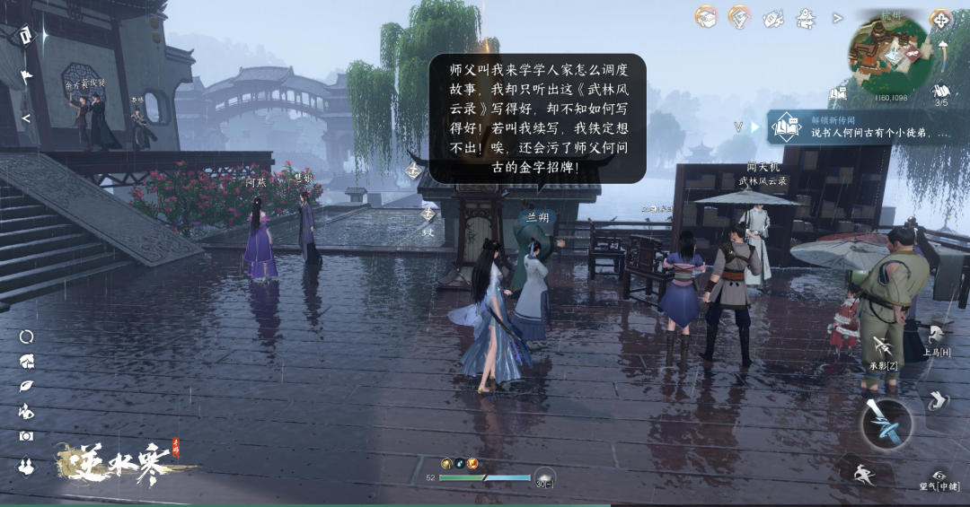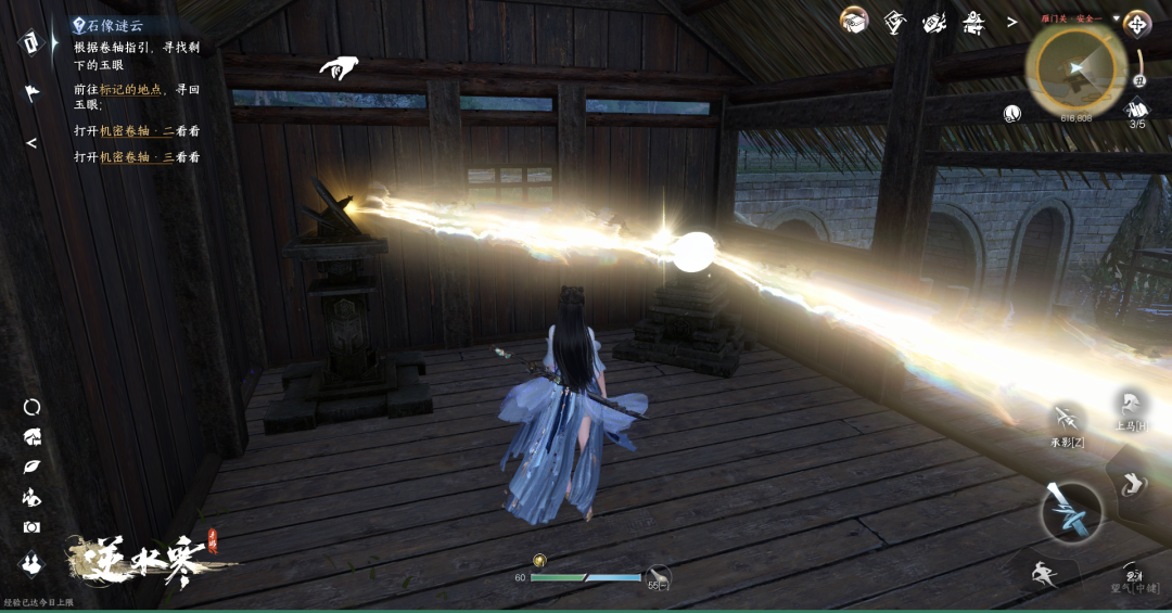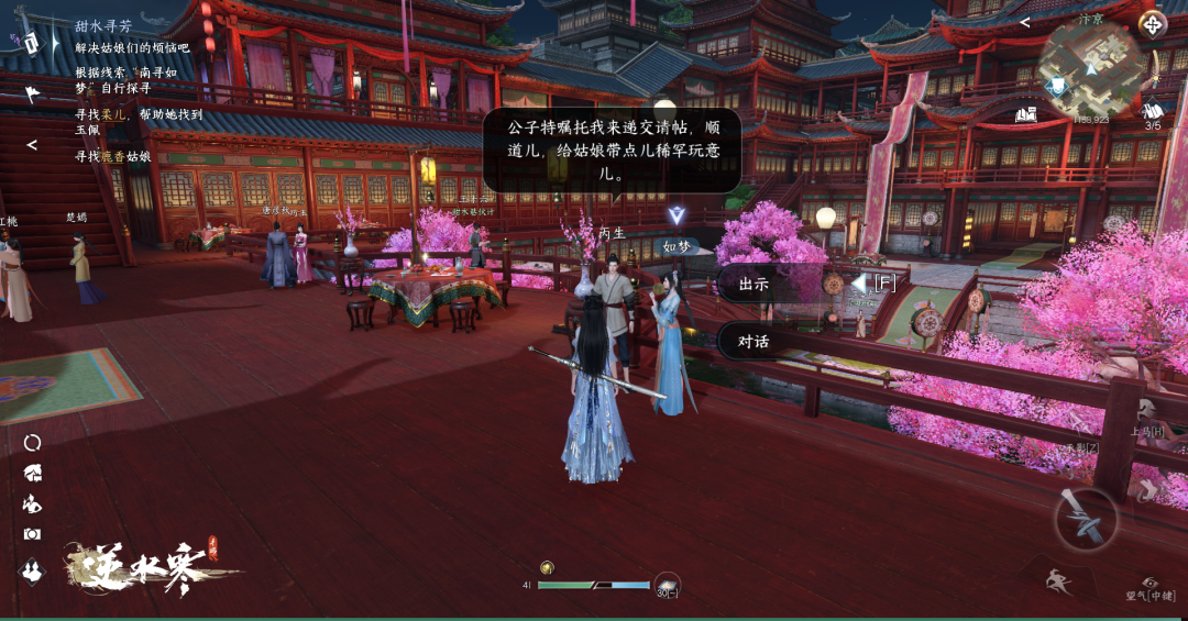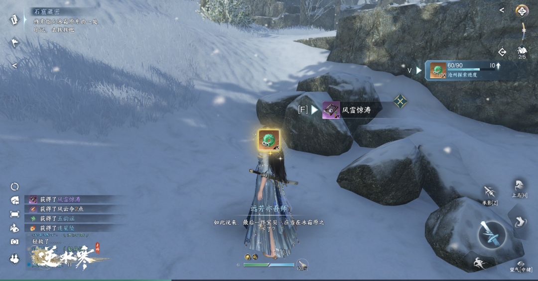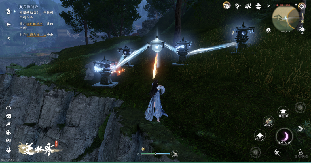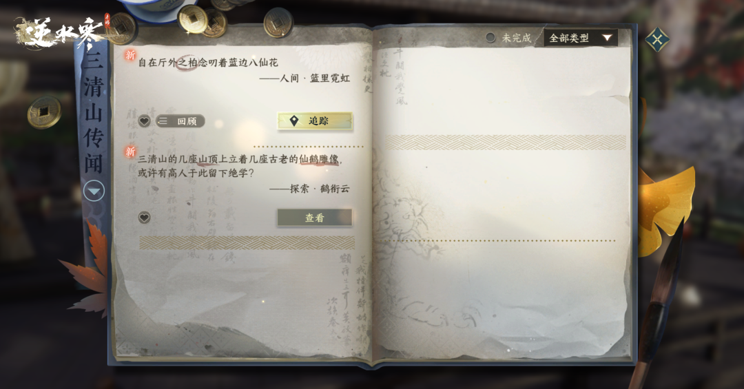 随手捡东西这个习惯,武侠片的主角一般都有! 你看,电视剧逆水寒里随手捡来的破书,就能让绝世大侠看的汗毛竖起,引为知交! 这个习惯用在咱们逆水寒手游开放世界里也完全没毛病,你永远都不知道自己随便捡到的哪个东西,随便做的哪个动作,随便和哪位NPC聊句天,就有可能在江湖上搅动风云—— 有的同门在雁门关前随手为已逝的将士上了一炷香,直接触发了藏宝图所在的机关,机缘巧合下习得了江湖绝技;有的同门只是在杭州看人多凑热闹去听说书人讲故事,结果没想到亲身参与其中,获得了江湖难得一见的独珍装备。 您不经意的一个动作,就有可能在江湖触发一系列连环风暴!这就是逆水寒手游因缘江湖中为您特别定制的“惊喜”! 惊喜这么多,怎么样才能高效率的触发呢?哎您还真别急,小寒就请来了一位深耕探索和解谜的同门,来给大家分享几个触发探索的秘诀,搭配游戏中的探索案例食用,更有参考价值! 看到NPC就搭话 每一个小物件都有用处 江湖最大的秘密藏在哪里?不是在流派重地中束之高阁,也不是在佛台莲座前受人供奉!而是往往都流传在大街小巷里!可能被百姓口口相传! 所以,想要触发探索线索的话,做一个会安静倾听,会主动搭话的人,非常的重要。不信?你看—— 汴京-甜水寻芳 随顾惜朝前往勾栏瓦肆卖艺,在勾栏瓦肆门口附近能触发传闻:甜水巷的龟公阿德,近日似乎有些烦恼…… 完成主线《画舫佳人》后,在甜水巷里找到阿德接取任务。 先去厢房找罗琦姑娘,与罗琦姑娘一同游玩听声辨位。 被罗琦姑娘蒙上眼睛后,可以使用右下角技能来询问她的方位。靠近罗琦姑娘后,即可尝试使用右下角技能扑中她。 获取罗琦姑娘的礼物后,再前往画后听听采桑等人在聊什么。 任务一直进行到“南寻如梦”,如梦就在甜水巷进门不远的位置。 如梦提出弹琴考验,只要随提示点击画面中花瓣的位置即可完成演奏。 寻到画像后,需使用【蛟龙得水】技能来分开两幅画。 之后在柔儿处询问她的烦恼,原来她丢失了一块玉佩。 柔儿的玉佩就在附近的楼梯底下。 最后是鹿香的烦恼,邀请她风摇筝,靠近树上的黑猫即可。 在鹿香提到的位置使用挖掘动作,竟然挖出了一本秘籍《虹带流霞》。 在甜水巷中央舞台上,就能成功习得该秘籍。 姑娘们的烦恼都解决了,回去找阿德交差吧。 杭州-杭城一梦故事中 在熙春楼外,兰朔正在听闻天机说书。触发传闻:说书人何问古有个小徒弟,正为出师说故事而学习。不妨去河坊街南侧的柳浪闻莺看看。 前往柳浪闻莺,与江边草对话接取任务 原来是兰朔说书不成。前往各地寻找听众,听听看他们的想法吧。 找到李月兰对话,听取白蛇与姐妹相识的故事。扮演白蛇击败青蛇。注意在青蛇攻击时进行防御,在青蛇出现破绽时再进行攻击 找到余大牛对话,扮演书生在断桥上寻找白衣女子对话。白衣女子正在此处。 找到连外鹤对话,扮演白蛇寻找正确的仙草。 4位土地公有3人是假扮的,只有一人说的是真话。禾文故是真正的土地公,红色的是真正的仙草。 找到常肯留对话,扮演高僧破解白蛇的水阵。 将三处铜镜旋转至朝向空中的伞即可,每次完成水位会下降一截,完成三次水即可完全退去。第一、二次水位下降时,旋转铜镜时会有其他铜镜跟着旋转,需要注意旋转的顺序。 破解阵法后,可从宝箱中获取独珍装备【沧浪流缨】。 进入熙春楼找到李休谈话,扮演小青学习雷法。 注意躲避地上雷电范围即可。完全躲避后注意点击QTE习得雷法 已寻完众人,前往雷峰塔下寻找兰朔完成故事。根据玩家选择,故事后续会有击败高僧拯救白蛇,和击败白蛇将其镇压在雷峰塔下两种选择。 选择镇白蛇,进入雷峰塔后山洞,击败白蛇 选择救白蛇,进入雷峰塔后山洞,击败高僧 完成镇高塔或救白蛇后,回到柳浪闻莺,查看兰朔的结局。 镇高塔结局 救白蛇结局 雁门关-青锋之忧 与冷青锋对话接取任务 随任务进度击败混混后,可以看到附近有一处山洞 进入碧崖洞,使用吸星揽月将铁块压在石板上,地洞门打开 跳下后追随蝴蝶前行 到此处后,使用吸星揽月将门内铁箱压在石板上,大门打开 进门后打开宝箱,使用吸星揽月将留一块铁箱吸引起来 将刚才吸引的铁箱放在门外的石板上,大门打开 继续跟随蝴蝶前行 站在外侧石板上,等铁箱掉下来后,吸引门内铁箱,推远后放在石板上 两侧石板都被压住时,大门打开。此时吸引另一款铁箱,将其拉近到自己身边。注意不要离开踩踏的石板,不然门会重新关上 用两个铁箱压住两个石板,进入门内 击败机关人,打开宝箱 在此处拾取机关钥匙 向前走到底,触碰机关 机关人出现,将其拉到对应属性的位置击杀。每击杀一次机关人,需要再次触碰机关出现机关人。直到5个机关人都被击杀方可打开宝箱,组合谜题结束。 机关人的属性对应关系可以通过望气查看,分别是: 金机关人——拉到火上击杀 木机关人——拉到金上击杀 水机关人——拉到土上击杀 火机关人——拉到水上击杀 土机关人——拉到木上击杀 看见东西随手捡 每一个小物件都有用处 路中间被遗弃的武器,有可能打造出一把穷尽山海也不可战胜的神兵?在山洞里捡到了一本无名手记?可能会引导你去沧州学到风雪惊涛的神技? 如果说小寒这次测试学到了什么,那一定是:“路上看到什么一定要随手捡起来!”不信?你看—— 磁州-穷山海 在磁州驿站触发驿站灭火奇遇,使
