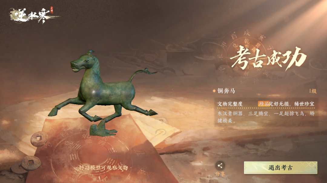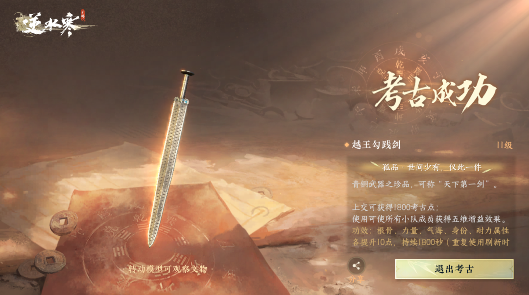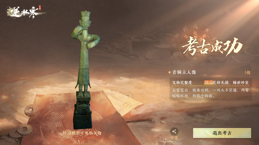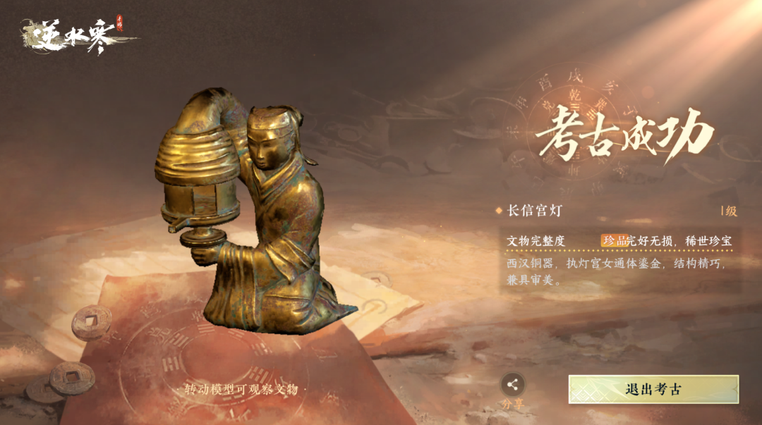 “在大大的花园里面挖呀挖呀挖,挖到的宝贝全都上交国家!” 最近汴京的街头巷尾流传着这样的童谣,仔细一打听,原来是“考古”这个江湖身份突然爆火,几乎人手一个考古罗盘、一把洛阳铲,俨然进入全民考古时代。刚结束的二测就有超过42%的玩家从事考古行业,仅次于更“实用”的挖矿和采摘。 为什么考古突然爆火? 很简单,由于堪舆寻宝技术升级,大宋境内外多地陆续出土珍贵文物,其中不乏国家级宝藏!而盗宝鼠贼也随之猖獗,为了让文物不落入贼人之手,咱们正义感满满的江湖豪杰们,自然会果断出手! 教科书上的国家级宝藏 咱们亲手出土! 春秋越王勾践剑、西汉长信宫灯、东汉马踏飞燕……这些我们从小从教科书上看到的国家级宝藏,甚至是近年来爆火的三星堆青铜大立人,都有机会被逆水寒手游的玩家们亲自挖掘出土,提前千年对它们进行保护,实打实的“功在当代,利在千秋”。 对文物宝藏我们也报以最大的尊重:逆水寒手游采用最先进的3D图形技术,发丝级还原文物的真实纹理细节,将这些文物宝藏用3D数据形式永久保存、永远鲜活、永不褪色。类似上述这些大家耳熟能详的国宝级宝藏,游戏里还原了近百件! 不过,小寒本人是个贪财之徒,无聊时会脑补:这些国家级宝藏,一定很值钱吧! 国家级宝藏当然为国家所有,一般是不会流通买卖的,但也有小部分被国家允许为“古董艺术品”,我们可以管中窥豹。 以古董艺术品“西周宣王五年青铜兮甲盘”为例,上面有133字铭文,记载填补了许多典籍中久已缺载的史实,是真正的“史诗级”宝藏。就这样一宝藏,竟然曾经被人当炊具用来烙饼! 好在今世之人懂得它的价值。2017年在西泠印社春拍现场,“西周宣王五年青铜兮甲盘”最终以1.85亿元人民币落槌,加上佣金成交价为2.1275亿元,刷新中国古董艺术品拍卖纪录,也被网友戏谑玩梗为“史上最贵平底锅”。 各位考古身份玩家出土宝藏的时候,手可千万别抖!抖一下可能几个亿就没辣! 全新华章任务 拯救史诗级宝藏不被烙煎饼! 在手游全新文物保护主题华章任务《万古铭心》中,兮甲盘同样面临着被不识货的人当炊具糟蹋的境地,咱们识货的同门一定要出手阻拦呀! 《万古铭心》任务围绕北宋名士“蓝田四吕”的家族故事展开,其中吕大防曾官居宰相,吕大临更是现存最早且有系统的古器图录《考古图》的作者。 在任务中,玩家将与吕氏后人一起保护流落民间的国宝级文物“兮甲盘”,捍卫国史,体会身为华夏儿女的历史传承和责任使命。 游戏内还原的兮甲盘 PLUS版蝴蝶效应机制同样运用于华章任务中,任务中会遇到剑拔弩张的情景,在随后的重大剧情选择中,有“人优先”、“物优先”两种选项,将会对NPC的生死起到决定性的影响! 华章任务的奖励也非常丰厚——能获得被誉为“传家宝”的独珍饰品!同时,剧情中的选择也会决定最后获取的独珍奖励到底是“铭心”还是“殉古”,前者可以让你再会华章任务中飒爽的女主;后者可以让盗宝鼠贼闻风丧胆、落荒而逃。 在另一个文物保护主题任务《太平有象》中,玩家将零距离接触现今保存的最古老的象棋棋盘,了解背后宋朝将领赵兴保家卫国的故事。 跟随跌宕起伏的剧情,玩家更将有机会亲炙历史上的名品“柴窑”。玩家的选择,将对柴窑是否失传的命运产生决定性的影响。 寻龙分金看缠山 360度还原“沉浸式”考古 在逆水寒里考古并非玩闹,而是非常讲究的专业。 如果您选择了考古专业身份,就会获得三样吃饭家伙:堪舆罗盘、洛阳铲、嗅探犬。 寻龙分金看缠山,一重缠是一重关,利用堪舆罗盘,什么方位有宝藏,咱们一算便知。就算距离宝藏太远,还可施展秘诀“望气”,寻得龙脉,顺脉而行,宝藏也就不远啦! 至于洛阳铲,很多人会自然而然联想到盗墓——这可是个误区!虽然起源是用于盗墓,但后来通过科学改良,已经成为考古学的专业工具。不仅是考古勘探,建筑、农业、水利等方面都会用到洛阳铲。 刺土、提土、看土、闻气……经过精巧打造的洛阳铲,只需一刺一提,通过附带上来的泥土和杂质,分分钟就能判断此处有无古墓和宝藏。当然,有时候还需要经验判断宝物所在土层,才能精准锁定宝藏具体位置。 若堪舆罗盘算出水下有宝藏,咱们也会闭气潜水,进行宝藏的打捞。 当然,再牛的考古专家也不能保证算无遗策,这时候就需要考古人的好朋友——嗅探犬出场了。它能够嗅探出含有宝藏土层的独有气味,给主人提示宝藏位置。 找到文物还不算完,咱们还要精细地擦拭文物,部分文物还得进行修复,让其焕发往日的光彩。 干考古,咱们真的是专业滴! 私藏文物?太刑了! 上交才是正途 挖到文物宝藏后,可别有私藏的念头!否则一念之差,年纪轻轻就会吃上牢饭,有神侯府的关系都不好使。 作为正直的自在同门,咱们肯定要选择上交文物,让像蓝田四吕这样的专业人士将文物妥善保护、保存,方能让文物流传百世、亘古弥新。 当然,对应的奖励自然也是少不了的: 在考古商店中,除了能兑换各种成长道具之外,还能免费获得考古主题时装【古尘春烟】。 当然,如果您在考古挖宝过程中有意外之喜——比如挖到了金色内功、稀有外观(腰饰、背饰、马鞍、马挂等等)什么的,那就纯属个人偶然所得了,默默揣兜里就好,上交人家也不要。 逆水寒手游里的身份有上百种之多,并非虚数,全景式再现了《清明上河图》中百业俱兴