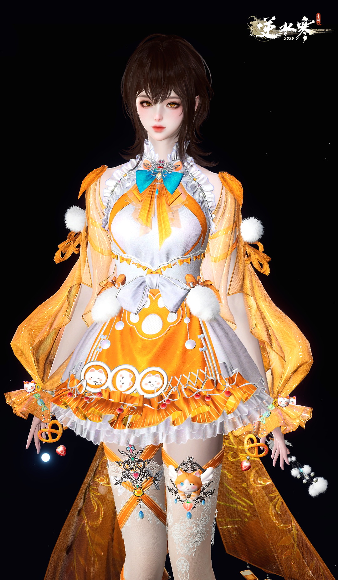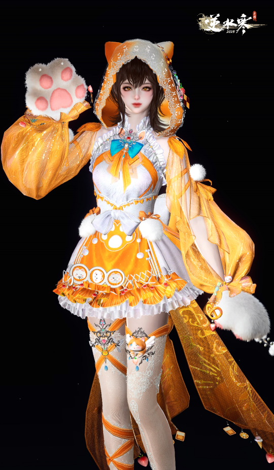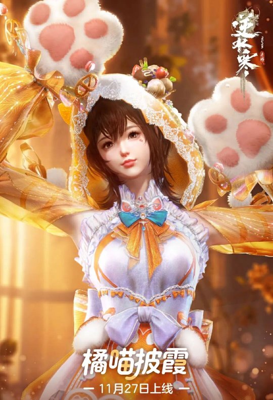 秋冬季节,是谁的被窝里还没有一只黏人的小猫呀? 天寒地冻,北风呼啸,不知道有没有那种金黄色的、圆嘟嘟的、蓬松的、像大鸡腿一样的小猫愿意来碰瓷一下小寒呢? 等等!小寒说的可是小猫,是谁把一只黄色的小猪送来小寒这里了!不仅一直响,还总蹭着小寒,这是什么意思? 来都来了,那就发挥小猫的价值吧!就以小橘猫作为灵感,为各位同门设计一套全新时装吧! 女款时装以可爱的蓬蓬裙为主体,猫猫耳朵形的兜帽为整体增添了几分可爱气息;白色小毛球和猫猫挂饰的点缀,在细节中彰显出精致与童趣。 男款时装斗篷处握着勺子的小橘猫,灵动又立体;款式简约,便于活动,在整体造型上既有着纯真无邪的萌趣,又带着几分洒脱自在的随性。 男女款时装支持裁剪!裁剪后,时装可去掉猫猫手套,行动更自如。 11月27日(星期四)至12月26日零点,逆水寒橘猫主题时装【橘喵披霞】将限时上架商城,直售价【980纹玉】,可使用限定纹玉、代金券、半价券。获取时装后,各位同门还将同步解锁配饰【甜梦奶芙】【喵仙之威】。 背景:创意工坊《篱间花境》,设计师@月晚照 小猫要吃点什么好呢?配饰【甜梦奶芙】已经告诉您答案啦! 摸摸小猫耳,万事不用愁!配饰【喵仙之威】让您也拥有小橘猫的霸气威严! 两天后,来逆水寒,穿上这套橘猫主题时装,成为逆水寒的新顶流吧! |