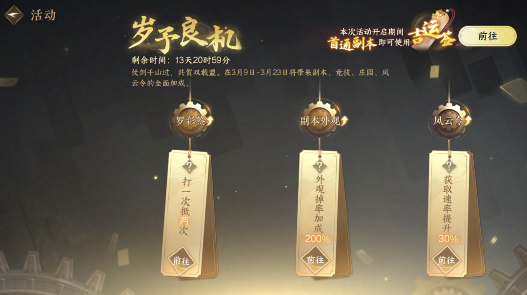 遗憾,原本是楼兰的底色。千年前的那场繁华消散在史书的断句里,留给世人的只有黄沙中沉默的残垣。 下周五(3月6日),全新资料片【楼兰遗梦】将正式开启。为了弥补这份跨越千年的遗憾,我们依据近一个世纪的考古发掘与史料,在专家的指导下,于江湖深处彻底还原了这座唯美、仙气、极具传奇色彩的楼兰古城。 既然是“楼兰”主题资料片,那就一定要去楼兰看看。您将在这里触碰数千百年前的楼兰残影,去开启那段被沙海尘封的壮丽新篇。全新地图【楼兰】,美得纯粹,美得令人遗憾。 为了不让这份美只停留在远观的遗憾里,这种极致的纯粹,将贯穿新资料片的始终—— 纯粹的剧情体验:您将与鸿音前辈一起谛听尘世之音,在全新鸿音正传中感受“天音不坠,人间长安”的真正分量;并在全新华章【楼兰一梦】中,梦回这座圣火映照下的辉煌古城。 纯粹的副本挑战:圣焰重燃,乱起沙州,新的挑战即将来临。全新团本【沙海楼兰】将开启一场飞天试炼,于壁画之得见梵天;全新武林风云录副本【西域行记】邀您重走丝路,对话文明史诗;画境余焰未熄,却似又迎来了新的执笔之人? 纯粹的武侠门派:御无锋不工,锻山河成刃。全新江湖门派【无锋门】正式亮相,自成一派的双刀绝学锋芒毕露,还将带来一场“极致动作化博弈”的高燃单人试炼。 纯粹的战斗体验:全流派技改、战斗平衡调整、全新竞技主题玩法同步开启。删繁就简,只为让战斗回归最原始、最爽快的博弈本质。 纯粹的摸金之旅:中式民俗碰撞奇遇摸金,纯PVE沉浸探索!瀚海夺珍全新赛季携新地图【无更市】来袭,更有全新“随机突发事件”机制带来危险与财富! 纯粹的智斗巅峰:愚人牌屋全新玩法【大小瞒】,以及【逆水侠棋】经典S1赛季回归,带来最纯粹的智斗巅峰与策略博弈! 此外,还有全新宠物、剧组站体验优化、猪猪侠欢乐联动等诸多内容带您体验。3月6日,楼兰见。既然是一场纯粹的盛宴,我们想把那份失落千年的“绝色”,亲自呈现给您。 消失的文明除了留下遗憾,还留下了足以惊艳岁月的奇珍。 伴随着楼兰古城的“出尘”,那些被风沙掩埋千年的“宝藏”也将一一现世。在这场纯粹的旅程中,您还将获得跨越千年的馈赠,收获丰厚的福利与奖励,包括全新1000纹玉代金券、半价券、联动外观,以及8套免费新时装、超多新外观! 《逆水寒手游》×《猪猪侠》联动 强强联萌! 主题活动《大宋顶流助力赛》上线 1)累计登录领好礼 版本更新后,同门在呼吸活动《大宋顶流助力赛》中每日选择血河小狗或者猪猪侠作为助力对象送出应援,即可领取联动好礼。 3月6日登录可领取容华阁半价券、配饰·悸动信号。 配饰·悸动信号 3月9日登录可领取300纹玉代金券、语音包·猪猪侠。 更有猪猪侠主题表情包、猪猪侠·特效礼盒、配饰·炙热勇士、称号·萌侠震八方、自选·优·稀有、自选·优·金、玉华染、螺黛染、寻侠帖、交子等好礼。 配饰·炙热勇士 2)联动特殊任务 《大宋顶流助力赛》过程中,累积助力进度将解锁联动特殊任务《汴京救猪》《杭州救猪》《枫林小驻绑架》。童年男神被不明人士绑架,亟需各位同门出手相救!完成联动特殊任务任务可得趣味战斗技能【顶流抗伤】,寻侠帖,交子等好礼。 3)故友重聚领福利! 3月6日至4月2日23:59,邀请好友组队并完成任务可以积累里程碑进度,并获得最高1130纹玉代金券和700绑定纹玉,还有机会获得外观基金! 【呼吸--签到领代金券】 3月16日登录可领300纹玉限时代金券、588纹玉(绑)。 3月18日登录可领百万交子、自选稀有内功。 3月23日可领150纹玉代金券、卓·金·金沙遗梦。 更有缚龙签、玉华染、螺黛染、墨烟锦、朔漠寒铁·金沙遗梦、沧海·熔金砂等好礼。 神秘庆典 即将揭晓 上线领1000纹玉代金券与纪念外观? 所有江湖偶遇,都是宿命相逢。 3月中下旬,逆水寒还将迎来一场神秘庆典!关键词:轻松温暖、福利到位,上线即可领取1000纹玉代金券与纪念外观! 具体活动时间与方式容小寒卖个关子,敬请期待~ 【岁予良机】 仗剑千山过,共贺双载盟。在3月9日-3月23日将带来副本,风云令的全面加成。 罗彩签打一抵二,副本外观掉率200%,风云令获取速度提升30%,首通boss即可使用吉运签。 【元夕灯谜】 活动时间:3月2日-3月23日 活动期间累计获得指定数量风云令即可解锁灯谜并获得奖励,活动共分为3期,每期周一5点刷新。 解锁灯谜可获得:玉华染、螺黛染、卓·金·关山飞鸿、朔漠寒铁、绑玉、交子等奖励。 伴随全新资料片开启,您将有机会触碰这段被沙海尘封的辉煌古城,并在冒险途中收获一系列西域秘宝!包括8件新时装、全新白发【烬神劫】,以及50+款精美外观! 发型【烬神劫】 (参与十二人团本【沙海楼兰】获取) 时装【欲莲浊心】/【妙天灼音】仅上下装 (参与十二人团本【沙海楼兰】获取) 时装【狮心啸城】/【烬业极天】仅上下装 (参与十二人团本【沙海楼兰】获取) 时装【轻骑踏月】/【雁霜衔月】 (参与武林风云录【西域行记】普通难度获取) 时装【骠骑逸尘】/【落雁弦思】 (参与武林风云录【西域行记】英雄难度获取) 时装【焚沙寂刃】/【画魄天衣】仅上下装 (参与全新【燃心画境】获取) 时装【不夜之火】仅上下装 (参与全新【燃心画境】获取) 无锋门门派时装【寒庐无锋】 时装【静水微澜】 (参与季藏获取) 坐骑【漠语·栗绒】 (参与全新【燃心画境