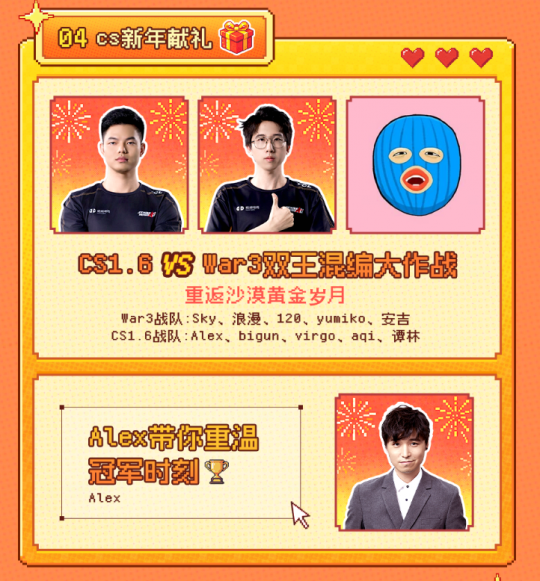 你终于醒啦?现在是2011年的春节前夕;你打开电脑,熟悉的开机音乐响起,门口的鞭炮声让你心里暖暖的……这个春节,KK官方对战平台邀请全国2.3亿8090后老男孩一起观看游戏春晚,回到最纯真的年代! 2月6日19点锁定官方直播间,kk首届老男孩游戏春晚重磅开启!全是你记忆里熟悉的游戏,即日起关注KK官方对战平台官号即可预约这场怀旧盛宴!(可使用抖音app扫码或直接搜索KK对战平台)让我们一起游戏配卤肉,啤酒管够!去他的车贷房贷,这个春节我们只当快乐老男孩! 【童年偶像云集!记忆里的老游戏全都有!】 在KK老男孩春晚的舞台上,时光机轰然启动!war3、dota、cs1.6、经典星际、红警、街机……你记忆深处所有滚烫的经典游戏,都将作为节目内容与大家相见!那些曾经在赛场上让你热血沸腾、在屏幕前让你顶礼膜拜的“大神”们也全来了!Sky、Moon、Alex、th000、eer0、浪漫、yumiko等各大怀旧游戏冠军都将准备丰富的节目和大家一起过新年,更有游戏风云老搭档BBC张宏圣与Magic杨全程主持,这是专属于8090后老男孩的怀旧盛宴! ·木盖大战经典对局重现,爷青回泪目; ·CS VS 魔兽双王大战,带你重返沙漠黄金岁月; ·DotA明星战队云集!谁是新年最强屠夫? ·怀旧音乐演奏震撼上线,刻在DNA里的旋律动了; 新春歌友节目温情开唱,由你熟悉的主播、选手用歌声点燃新年氛围;还有更多精彩节目,持续关注KK揭晓!这哪是看春晚?这是把咱们的青春录像带,原汁原味地重播一遍! 【不整虚的!实物年货+地图UR拿到手软】 除了精彩节目,老男孩春晚直播当天准备了超多年货好礼,每个专区节目后都有千元福袋现场狂发!更有不思议作战、玛法岁月、齐天大圣等地图UR福利狂送!这个春晚,福利管够,K妹绝不留一件年货在后台! 【寻找全网最“×”玩家!好礼奉上就等你来上春晚!】 KK向全网老男孩发出召集:寻找全网最“×”玩家!无论你是擅长音乐争做全网最会“演奏”、还是擅长射击力争全网最会“射”玩家,无论你是哪派高手,春晚舞台等你封神,参与活动即可拿好礼! 参与方式:录制您最满意的才艺视频,在抖音、B站视频平台投稿带上话题#老男孩春晚# KK官方对战平台 活动礼品:优质内容将获得由KK送出的200元严选卡奖励!(请留意视频平台后台私信) 玩魔兽,上KK对战平台!带你重回青春,再战魔兽二十年!已收录万张经典地图,一站式找图读图联机,畅玩海量经典怀旧游戏!点击链接下载,玩魔兽,就上KK! |