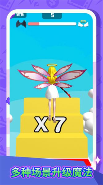 2、天使角色养成,扮演灵动天使,收集翅膀、饰品,定制个性外观,提升跑酷能力;
