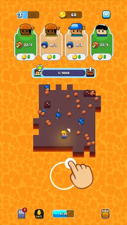 1、开掘矿石,累积财富,用于购买和升级开掘装备,提高工作效率;