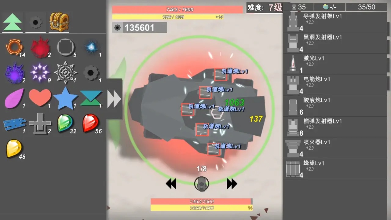 前期过渡武器机枪是无二选择,机枪可以升级到lv4,伤害可观,配上A1锁头那前期真是舒服的批爆,中期可以带一带酸液炮,可以叠加的伤害在溜怪的同时也能打出巨额伤害,后期没别的好说的,激光,lv4的激光突出一个猛,自动锁定,距离远伤害高,多攒就对了。辅助性的武器只能装特定格子,记住了,前期修复光线和治疗无人机可以带带,中期可以带护盾,后期可以带飞机或者修复站,但其实基本用不太上。