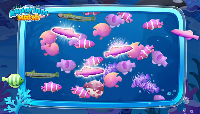 2、玩家需要通过点击进行消除,将水族箱中的小鱼全部消除掉,以体验消除游戏带来的乐趣。