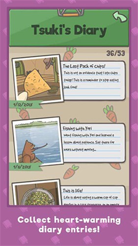 游戏玩法十分简单悠闲,游戏和旅行青蛙有的一拼,玩法相当佛系,在游戏中,玩家将扮演一直月兔,由于在城市生活的种种不顺,爷爷去世的一封信,让这只被生活击败的它回到了爷爷的胡萝卜农场,开始了新的生活,玩家在游戏里需要照顾这只兔子,带他玩耍、交朋友、种植胡萝卜等等