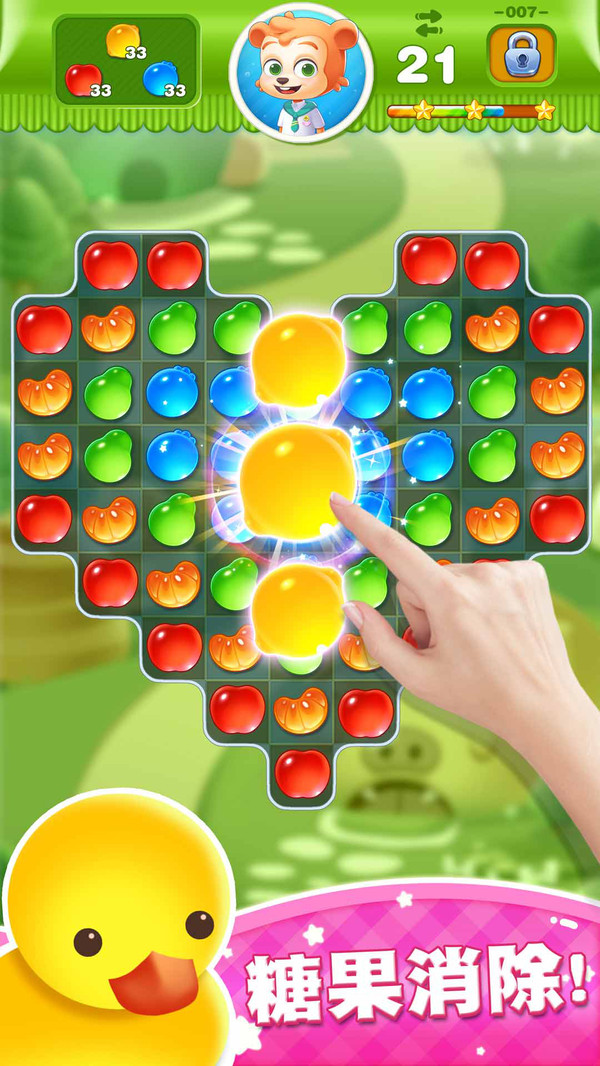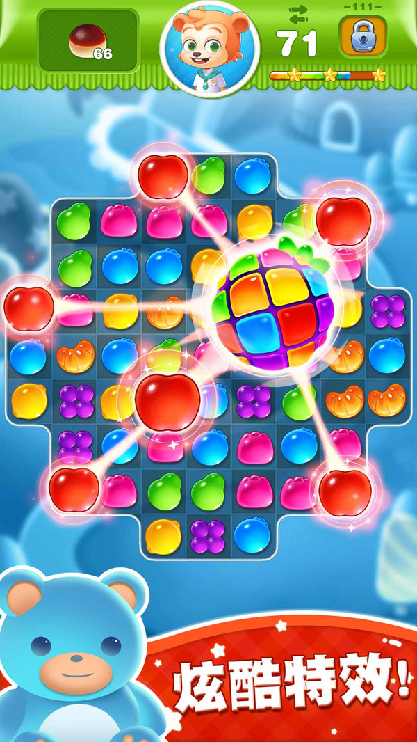 4、手机游戏道别传统式的碰碰碰、连连看玩法,选用有别于消灭星星的糖块联线清除方式。