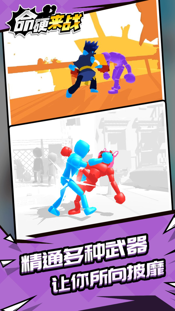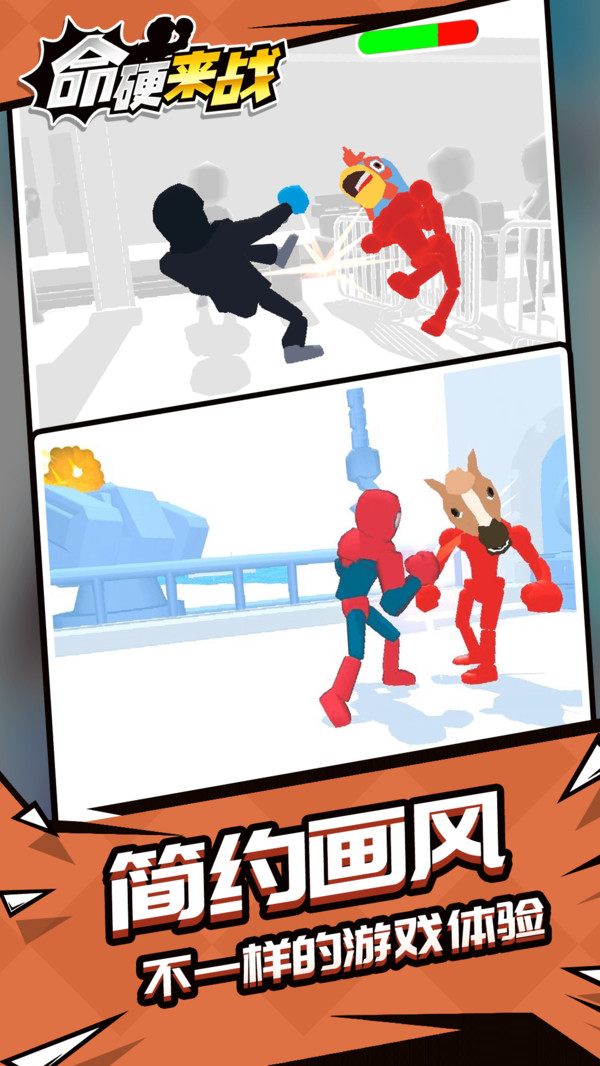命硬来战游戏是一款玩法超级刺激的模拟竞技PK的手游,游戏以火柴人为主要的游戏元素,玩家们将在众多的火柴人角色中选择自己喜欢的角色进行战斗哟,超级强大的战斗力可以让玩家们成为竞技场上最强的存在,将所有的妄图挑战你的敌人全部击败,守卫自己竞技场王者的宝座,非常的刺激哟,大家快来下载游戏开启你的战斗之旅吧。