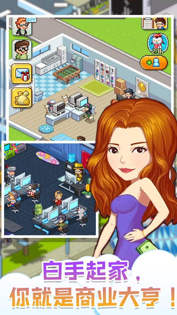 我要当老板游戏是一款非常有趣的模拟经营类型的游戏,游戏中有着非常多的商业机会在等着玩家们抓住,玩家们需要快速的抓住眼前的机会,逐步的开展自己的公司,招募各种方面的人才员工为自己工作,培训自己需要的员工,这些都是玩家们需要做的事哟,感兴趣的玩家们快来下载体验一下白手起家创业的刺激感吧。