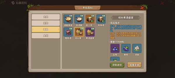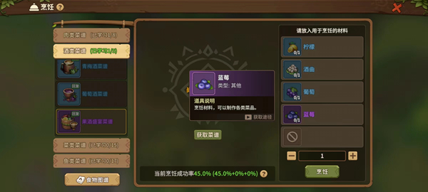 烹饪系统中有四类菜谱,分别是肉类菜谱、酒类菜谱、菜类菜谱、鱼类菜谱,分别对应的是生命增益、气力增益、伤害减免、命中提升等四种效果。在烹饪之前玩家需要先学习菜谱,蓝色的菜谱可以在石币商店、声望商店中购买。紫色菜谱则需要通过精灵王试炼、元素神殿等玩法获得,品质越高的菜谱做出来的菜肴属性加成越高。