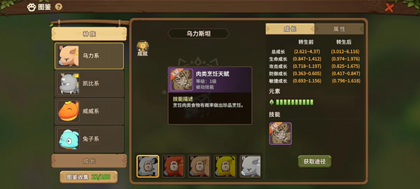 宠物烹饪还有一个非常特殊的特点,游戏中的部分宠物拥有烹饪珍品菜品的天赋,比如乌力系宠物中的乌力斯坦有概率做出肉类珍品烹饪。而扑满乌力拥有鱼类烹饪天赋,可几率做出鱼类的珍品烹饪。因此玩家可以养成一些乌力系宠物用来烹饪。