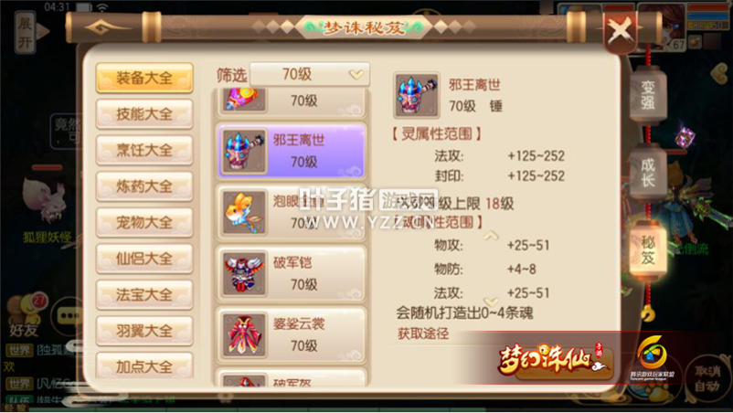 《梦幻诛仙手游》装备系统 圣巫60级装备洗炼解析