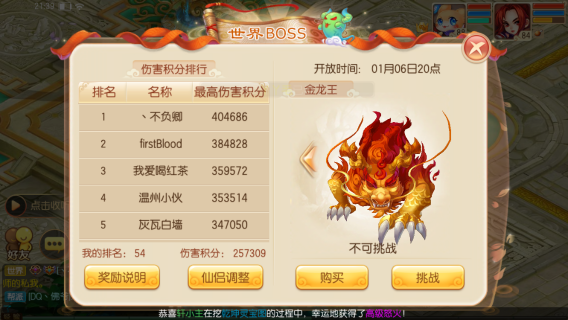 第一次看到世界BOSS金龙时,目前的心绪被拉回了端游的巨龙觉醒,巨龙虐我千百遍,我待巨龙如初恋,说实在的,很喜欢巨龙觉醒这个版本。而手游里的巨龙被当作世界BOSS,分别有金龙与黑龙,轮流挨揍。我们对其伤害越高奖励就越丰富,那么如何才能对巨龙造成最大的伤害呢?且看木心为你一一解析。 活动时间:每周五20:00—24:00 人数限制:单人 等级限制:30级以上可以挑战,当然等级越高,造成的伤害可能就越高 活动描述:尽一切能力给巨龙造成最高伤害... 【挑战准备】 仙侣与阵法排位,按门派不同来决定仙侣,就木心作为鬼王而言,治疗系和封系必须携带的,然后双输出,这样保证能封印龙爪与龙头,同时保证火力;如果你是治疗系的话,那么带3输出1封,同理,封系也是这样。阵法越高级越高,在这里木心推荐5级虎阵,保证治疗和封系的速度之外还提升了输出系的伤害,伤害杠杠的,木心建议带重生法连宝宝。另外带点蓝药,地灵救心丸也是必备的,以免被封印或者仙侣没有法力。 【挑战技巧】 在挑战巨龙过程中,要注意巨龙说话台词,当它说:下回合普通攻击回复大量气血或者增加封印时,那么就表明巨龙已经是虚弱buff状态,这时我们全力输出,伤害有所加成。还要经常注意,可以长按观察巨龙身上的buff状态,当它狂怒状态我们打的伤害会衰减,同时爪子也有有法抗与物抗buff。我们注意这些转换buff,那么输出自然达到最大化。(特别是注意12回合后仙侣可能木有蓝哦,记得喂药,药不能停呀) 【挑战目的】 挑战巨龙有5次机会,也可以用60元宝购买一次挑战次数,但是名次是按照伤害最高那次为准。所以,尽一切可能对巨龙造成最高的伤害,伤害越高奖励就越高,所以不要吝啬技能,把巨龙往死里揍吧。但是巨龙伤害也炒鸡高的,打我们身上一样疼,除了我们自身输出之外,同时靠封系,如果封系不给力,那么被团灭也很正常滴。另外木心得吐槽下,合欢打巨龙很厉害啊有木有,带双封都不用带治疗的,休息就给仙侣拉血拉篮,相当于半个医生了...也难怪战力不高的合欢竟然伤害这么高! 【活动奖励】 除了高额经验、洗魂珠、反生丹、启灵珠等等,还有排行榜上的名次奖励哦,奖励炒鸡丰富,超级技能书、三级护符、10万金锭、高级技能书、炼骨符等等...看着这些奖励木心就流口水啦! 世界BOSS是奖励很好难度挺高的一个活动,除了自身战力,对仙侣,宠物,也有很大的要求,当然运气也很重要,如果封系封不中龙,那么自身再高的伤害也无法全力输出,仙侣血太少啦,容易倒下。如果运气不好,那么可以双封上场,至少比被团灭要好,一切都要随机应变哦! 了解更多相关信息,请前往http://www.yzz.cn/sy/mhzx/ |