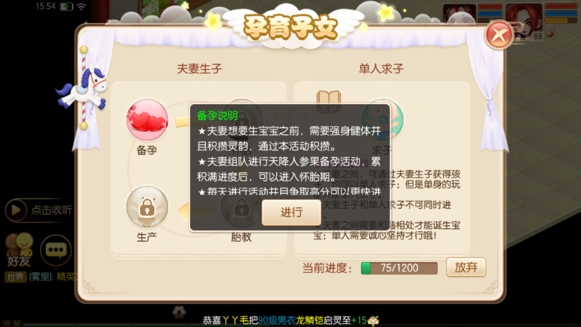 自集体婚礼公测以来,各位小伙伴都在秀恩爱,各种秀,喂得木心一把把狗粮吃的不亦乐乎...试问你们的爱宠之心何在?三月春暖花开,桃花纷飞,爱情的气息弥漫,白色情人节刚过,大家还在秀恩爱之际,《梦幻诛仙》手游便悄悄推出全新玩法子女系统,将给你带来“生儿育女,为人父母”的甜蜜体验,你准备好迎接你的“萌娃娃”了吗? 如何生孩子呢?生出来的孩子有什么作用呢?单身狗也能生孩子? 【夫妻双双把娃生】 夫妻生娃有四个阶段,分别是备孕→怀胎→胎教→生产(同人…手动滑稽),缺一不可,而各个阶段都需要一步步来,总不能备孕就生产对吧,生娃娃可是一件严肃而神圣的事情...各个阶段游戏内都有明确步骤,这里木心就不啰嗦了,你比木心还聪明怎么可能不懂! 【单身贵族喜当爹】 单人求子作为游戏中喜欢独来独往或者身为单身狗的福利,作为单身汪的我,只能默默的抽签攒积分,含泪跪求观音姐姐能照顾下单身汪赐我一个小宝宝,从上供贡品和抽签这过程需要漫长的日子呢,所以啊,想得到小宝宝,除了诚心的上供,还有贵在坚持呀! 之前看人家集体秀恩爱,木心总是站得远远的围观,捡捡红包,手中始终拿着一根火棒...现在子女系统横空出现,我连生娃娃都是一个人,没有什么比这个更虐心的了,我别过脸偷偷抹眼泪,像个受了委屈的孩子一样。你再看看别人,人家夫妻双双对在生产时的互动,多么温馨,令人羡慕: 相公:“娘子...” 娘子:“啊哈?” 相公:“我们去哪里呀...” 哦不好意思,跑题了,在产房里不断私信“相公”,催促他赶紧完成任务的“娘子”。夫妻间的羁绊通过孩子得到了升华,看着自己刚出生的宝宝和身边的爱侣,想想都好甜蜜哦!(诶,我手里怎么多了一根火把...FFF) 经过以上努力,相信你的萌娃娃已经诞生,这时你回家就会看到萌娃娃,点击他就会显示养育、到我这来、逗乐、携带四个选项,这是婴儿期,需要各位爸爸妈妈悉心照料才能让娃娃茁壮成长。 进入童年期的孩子外形第一次变化,首先我们要给小可爱抓周礼,考虑小可爱的属性选择未来的门派,然后根据所需要的门派属性去培养他。如果不愿意浪费脑细胞的话也可以直接选定未来想要拜入的门派,系统便会为你准备一套相应的学习方案,看得出研发部的大哥哥们还是挺细心哒! 第三阶段长成期外形再度变化,变成小少侠了,你要带着他去报幼稚园各种兴趣班什么的?哦不,在梦诛江湖你要带着他拜师学艺,对其自身的资质、技能和性格进行培养,如果培养不得当,那么孩子会进入叛逆期,反过来对着你队友就是一刀...惹得队友暴跳如雷,哈哈哈,木心就喜欢这样的熊孩子,等我有了孩子我就这样养..... 当我一把屎一把尿的把小可爱的拉扯大,除了体验了一把“为人父母”的乐趣之外,才深深体会到当父母的艰辛与伟大,在此木心向天下母亲致敬:妈妈您辛苦了! 了解更多相关信息,请前往http://www.yzz.cn/sy/mhzx/ |