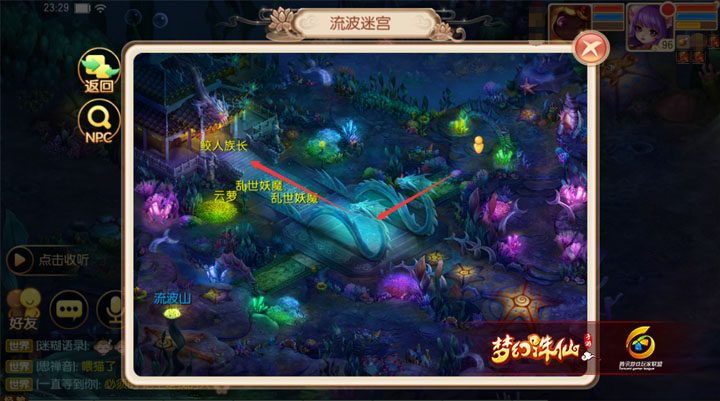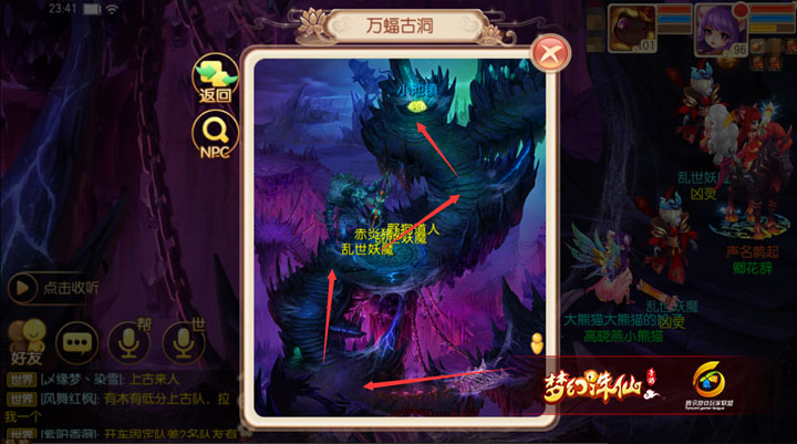 对于大部分玩家而言,决战九霄大家都非常熟悉,每个星期总要“临幸”那么两三次,有小伙伴要问了,决战九霄还需要攻略吗?实际上,很多小伙伴只知其一,不知其二。决战九霄虽然是一个按照步骤一个个找NPC制服BOSS就能过关的看似简单玩法,其实也藏了小心机哦,那就是不找前置NPC直接怼BOSS也是可以过关哒,能节省不少时间呢!小伙伴又要问了,不找前置NPC找不到BOSS呀,别急,本梨今天就给大家手绘九霄地图,包你快速通关。 第一关用的是流波迷宫的地图,BOSS囚牛在鲛人族长的位置。 第二关用的是流波山的地图,BOSS睚眦就在阶梯上方,走过去非常近。 第三关用的是死亡沼泽地图,图中人物标记代表落地点,箭头所指为BOSS嘲讽所在位置,直接走过去比寻找前置NPC在外围绕一圈快很多。 第四关用的是万蝠古洞地图,这个地图稍微远一点,手动走过去的路线和点NPC的路线几乎是一样的,但是省去了与NPC对话的过程,也是能节约时间的。小池镇3个字的下方,就是BOSS蒲牢所在的位置。