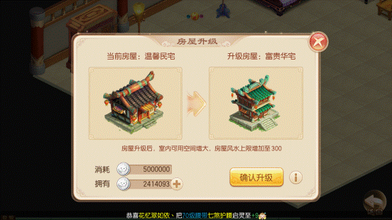随着公测版本的开放,等级达到50级的少侠终于过上了有车(坐骑)有房成功人士的生活。特别是家园系统的降临,使得游戏中单身们有了栖居之所,夫妻更是有了共同经营的温馨小窝,平时邀请朋友们开个家宴,还可以比一比谁的家更漂亮。那么今天兜妹就来带领大家一起去看看,家园系统中都有哪些有趣的玩法吧。 【建造房子】 领取任务NPC:方无(京城423.124) 消耗银币:10万 或者购买地契 注意事项:每个玩家只能建设并拥有一间住宅。选择一种建造完成建造任务后即自动入住房屋。 回家方法:可以点击主界面上的【家园】按钮回到自己家中,也可以找【方无】传送回家。 【家园风水】 家园风水可以通过摆放家具来提升,也可以通过房屋升级提高风水值。 【家园清洁度】 每天可以通过房屋内的仆人打扫房屋提升清洁度。 【房屋家具】 少侠可以在仆人那购买家具,自行按照喜好放置家具、改变家具、布置房子。 家具风格:家具有古风典雅、甜美可爱、时光魔法和哥特风情4种风格 家具种类:每一种风格的家具又细分为桌椅、床柜、摆设、地面和墙饰。 购买家具:家具可以在家具商店购买,基本用银币就可买到,部分高档家具需要金币,但普遍不贵,在普通玩家购买能力内。每天购买数量有限,可以通过刷新获取更多家具。每天最多刷新3次。(帮战等活动也有几率掉落家具。) 【家园屋舍】 家园屋舍分为卧室、宠物室、丹药房、厨房和佣人房五个房间,少侠还可以在仆人处对家园屋舍进行升级。 卧室:可以恢复活力和饱食度,每天可以恢复2次活力、2次饱食度,初始1级可以恢复40点活力、40点饱食度,提升等级后,每次恢复的上限值也会相应的得到增加。 宠物室:在宠物室可以对自己的宠物进行训练,每天可练5次,训练后该宠物将获得宠物经验,这对提升宠物等级有很大的帮助哦。屋舍等级越高,每次训练获得的经验也就越高。 丹药房:丹药房能增加炼制丹药双倍产出概率,初始1级丹药房能提升4%的概率,每提升一级概率增加1%。 厨房:厨房增加烹饪双倍产出概率,初始概率和提升都与丹药房一样。 佣人房:初始佣人为年长的老仆,通过提升佣人房可提高佣人等级,高级的佣人打扫房屋的效果越好。清洁度越高风水值也就越高。风水值的作用虽然没有明说,但写了家园风水会保佑住宅中的玩家,由此可以推测,家园风水会影响玩家的幸运,或许在家园中打造和启灵成功率会更高? 【房屋升级】 房屋目前可以升级三次:分别是500万银币,2000万银币,和100万金币。 注意事项:房屋升级目前只有购买者可以升级,房屋不能进行和买卖,离婚后不影响家具归属权(购买者会拿回自己买的相应的家具)。 【探险猫】 探险猫获取: 探险猫玩法是目前比较火爆的玩法,想要开启家园探险的话,先要购买一个探险猫。探险猫目前只能通过商城直接购买获取,暂时没有其他方式获取哦。 点开商城中最下面的杂物一项,就可以看到猫绅士的物品购买,探险猫售价5W金币。 探险猫探险: 邀请好友帮忙投喂,探险猫满活力之后即可派出寻宝,少侠可以通过点击玩家头像进入好友家园来进行投喂。探险将会获得游戏内道具,如神兽,技能书,启灵珠,家具等丰厚奖励哦。 注意事项:这里需要注意的是探险猫并非永久的,探险猫在探险过程中可能会遇到各种情况,比如意外死亡等,届时兜妹只能惋惜的告诉少侠,请重新购买了。 【家宴】 开设家宴:每位少侠每日可在自己家园的大管家处开办家宴一次。因为家宴时间有限,千万要记得提前通知亲朋好友参加,因为参加的人越多,房屋人气越足,家园风水越好哦。 佳肴:家宴开始后每1分钟刷新一次菜肴,每人每天可以参加无数次家宴,但有效奖励只有5次哦。 那么如何提高家宴等级和收益呢?兜妹偷偷和你说,风水值和参加人数都会影响家宴的收益,参加人数在屏幕左上方可以查看哦。 |