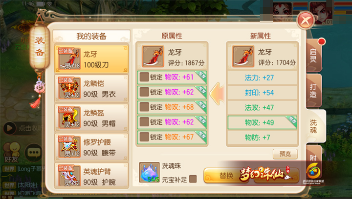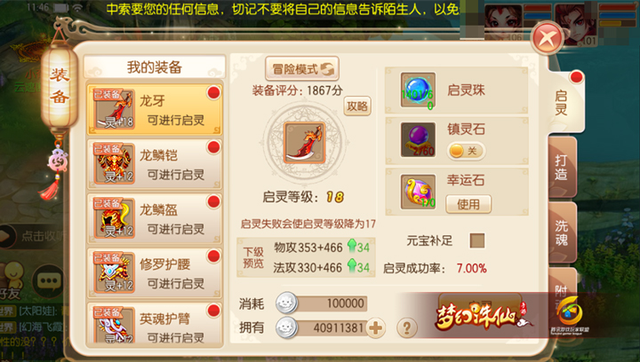 随着百级的开启不少玩家踏上了打造百级装备之路,自然一些闪瞎眼的神兵也是陆续登场,虽然鬼王宗的玩家在众多门派中已算得上小众,但这不妨碍鬼王忠实玩家对于力量的追求,今天的【神匠坊】就给各位带来百级武器—龙牙的展示与介绍,一起来看看吧! 上图展示的龙牙可以说是所有鬼王玩家梦寐以求的神器:首先自身灵属性加成的351点物攻就不算低;其次21的启灵等级带来的533额外攻击加成更是恐怖,毕竟想要启灵至21就算脸白也是笔不小的开销;至于魂属性方面全程攻击魂带来的340点物攻加成近乎完美(最大加成上限为350),可见为了这五橙攻击魂物主也是颇下工夫;最后特技方面舍命可以说很好的契合了鬼王门派的特色,通过牺牲防御值来大幅度提高物攻伤害,而这个特效带来的物攻加成也有180点。细细一算这把武器总的物攻加成达到了恐怖的1404点,想必就算攻击不及格的鬼王抓上这把武器也能瞬间变成输出达人,自然还会有玩家觉得这把龙牙算不上神兵嘛? 虽然是神兵但造价并不低,所以不是每位玩家都能打造的起的,那么接下来就给各位说说打造10级武器时注意的一点:那就是武器的魂应如何取舍。 对于百级装备个人觉得它们的使用期还是很长的,所以玩家可以用心打造一番,其中对于武器跟鞋子部位个人建议打造出五橙魂的效果(魂属性自然选择推荐值),毕竟凑齐一件装备的五橙魂耗价也就在36W~60W金锭之间,而玩家只要不是太“吊车尾”那么到百级之后还是能有这么多金锭的,当玩家打造了一款五橙魂装备即使升入110级其变为五紫魂品质实用性依旧很高,从经济适用型角度出发确实不赖。 那么在启灵方面个人不太推荐玩家追求21的启灵等级,毕竟到了18之后启灵成功率太低,每提升一级的启灵等级背后都是庞大的资金投入,而拿这些资金投入到其它方面中也能带来不弱于启灵的攻击增幅,所以玩家在对待启灵时不要盲目,毕竟像法宝、坐骑都是不容忽视的强化项目! 那么这一期的龙牙展示就给各位介绍到这里,最后感谢各位玩家的观看,我们下期再见!拜拜~~