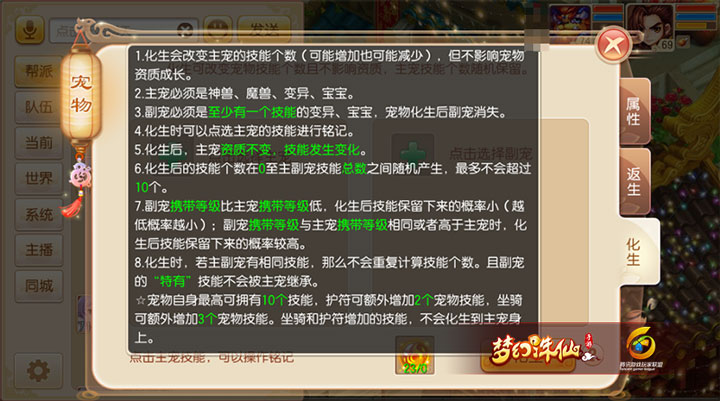 在梦幻诛仙的修仙路上伴随我们最多时光的就是宠物,相信很多玩家都羡慕拥有多技能宠物的仙友,毕竟一排排技能异常瞩目。那么今天就来说一说多技能神宠的打造方法,力求每位玩家都能拥有心仪神宠。 首先我们得知道化生宠物是一个什么样的功能,每个小伙伴都可以看一下,简单的说就是宠物与宠物之间的合成称之为化生。 这里面有些小问题要注意: 1)化生是不会化生掉已经铭记了的技能; 2)化生不会影响主宠资质,只会影响技能数,其中特有技能不可被继承; 3)相同技能不会重复计算技能个数,且副宠可携带等级大于(等于)主宠可携带等级效果会更好; 说完了注意事项接下来就进入正题,毕竟没有合适方法化生宠物只是笔赔本买卖,想要拥有多技能宠物靠蛮干是远远不行的! 首先我们需要化生出多技能副宠来充当素材,这里个人比较推荐使用爱心兔这只5级可携带宠物充当主宠,毕竟这段时间用它化生出的成果还是相当不错的! 至于副宠的选择个人推荐15级可携带的蝎子,至于原因有两点:一是比较便宜,因为随着宠物可携带等级的提升价格会随之升高;二是技能不冲突,之前说过当化生宠物技能重复时会对结果产生影响(用技能书顶掉重复技能会加大开销)。 选定了化生素材只是第一步,接下来要将其返生成宝宝状态才可进行化生,并且在返生过程中我们要尽可能追求多技能(资质如何、变异与否无需关注),一般来说返生成三技能宠物即可,然后去商会购买便宜的低级技能书将其顶成四技能就可以开始化生了(1000左右售价的技能书均在选择范围内)。 化生节奏如上图所示,首先我们需要使用“4+4”的方法获得5技能(及以上)的副宠素材,然后再将需化生的神宠作为主宠进行化生,自然随着主宠技能数的增多副宠技能数也要相应增加,这里建议副宠的技能数比主宠多1至2个即可。并且在化生前最好先化生十次左右看看现处时段几率如何,毕竟不同时间化生结果的涨幅概率存在差异(涨技能概率在50%就很容易成功了)。 最后提一下铭记丹这个道具,对于稀有技能可以将其铭记下来保证在化生过程中不被丢失,但需注意的是返生时铭记技能不会被保留(即使是原有技能铭记状态也会消失)。 说了这么多,相信大家对于宠物化生也有了相当的了解,那么赶紧登陆游戏打造心仪的爱宠吧! 想了解更多《梦幻诛仙手游》相关信息,请前往叶子猪专区:http://www.yzz.cn/sy/mhzx/ |