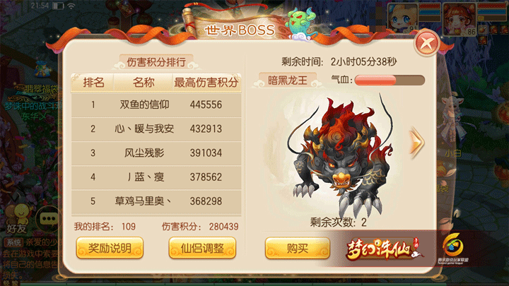 欢迎收看这一期的【兵法决】,今天给各位带来的是有关圣巫教挑战世界Boss副本的阵容推荐,其作为游戏中的辅助门派在比拼输出的活动中自然比较劣势,而伤害主要依靠仙侣与宠物,那么接下来就一起看看如何排兵布阵吧! 【活动介绍】 世界Boss活动副本每周一次,每周五晚八点准时开启。在活动中每位玩家有5次免费挑战的机会,而活动结束后会根据玩家的最大伤害积分进行排名统计,自然排名越高最终奖励也就越丰厚! 【推荐仙侣】 大巫师在世界Boss副本中的表现可圈可点,大巫师“禁灵锁”技能可触发被动技能“离魂恐咒”,使得被Boss被封住的部位会攻击自身,而这不仅减少了boos的输出量,也变相增加了我方的伤害量。 【阵法、仙侣的选择】 推荐阵型:兵刃阵。推荐阵容:陆雪琪、鬼厉、金瓶儿,大巫师。 兵刃阵对于仙侣站位没啥要求,毕竟所有位置都是增伤减速的,这里玩家也不用担心冰刃阵的减速效果使得BOSS先于玩家进行攻击。此时玩家与大巫师双封组合可以有效限制住BOSS的行动,而拥有法术连击效果的陆雪琪在输出方面表现不俗,至于频繁释放乱鬼斩的鬼厉依靠自身特技也能打出海量的伤害,虽然上阵的金瓶儿在伤害方面一般但其拥有的强迫效果可以起到半限制效果。 【挑战Boss注意事项】 世界Boss的输出量可以说相当高,且三个部位都为群攻设定,其中左爪拥有封印能力,右爪可为自己添加增益BUFF,所以玩家在手动封印时需优先封住左龙爪,。当双封有效限制住Boss的行动后,那么就可以依靠回合数来累积伤害了。 而在挑战BOSS的过程中大巫师越多使用“禁灵锁”进行封印,对于玩家的伤害累积就越有裨益。其中金瓶儿的“强迫”虽会触发,但并不影响被“禁灵锁”的部位强制攻击自身。 那么这一期关于圣巫教世界Boss副本阵容推荐及打法的详细解读就到这里,最后感谢各位玩家的观看,我们下期再见!拜拜~ 想了解更多《梦幻诛仙手游》相关信息,请前往叶子猪专区:http://www.yzz.cn/sy/mhzx/ |