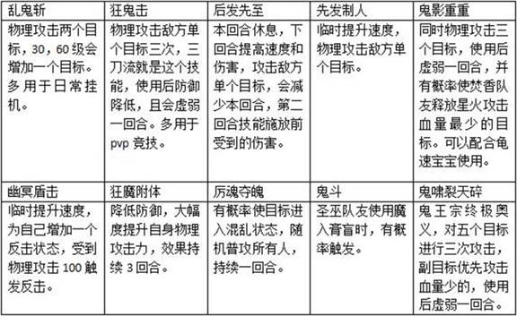 鬼王宗是梦诛游戏七大门派之一,以狂刀和爪为武器,门派定位是物理单攻,既物理攻击单体角色。 鬼王宗的角色形象还是非常霸气的,凭借不菲的单体输出能力,是队伍中的灵魂角色,无愧于鬼王宗的霸名。 具体技能如下: 鬼王宗最出名的还是“三刀流”,只需要三刀,就可以把一个角色砍到残血甚至死亡。 鬼王宗在pvp模式中可以发挥巨大的作用,超高的伤害,永远是队伍中最耀眼的星。 鬼王宗劣势:释放技能消耗血量,血量限制技能的使用,且pvp模式中永远都是被封印和集火的对象之一。 修为方面,追求极致的鬼王肯定都要点满的!可以同青云一样,优先升级角色攻修,再逐步对其他修炼进行升级。 坐骑选择: 鬼王宗坐骑首推黄金黑豹,其附加的属性适合所有物理角色使用,且附加的破灭技能,在对目标进行一次攻击的同时还有概率降低目标0.2×自身等级的物理防御值。另外梦魇也是必备的,毕竟鬼王有了高速度才能发挥出其高攻击的优势。 装备魂条属性选择: 武器首选物理攻击,其他装备根据系统推荐进行洗魂,不过鬼王宗物理防御高,可以把物防魂条改成物理攻击魂条。追求极致高伤的少侠也可以把所有魂条都洗成物理攻击,以追求更高的攻击。 装备的特效也是以物理攻击、力量以及速度为主的,毕竟鬼王追求的就是高伤高速嘛! 加点方案:日常任务和pvp竞技都可以全力加点,在竞技的时候,如果对速度不满意,也可以去4力1敏,毕竟速度快才有出手的能力嘛! 羽翼技能选择: 羽翼技能多种多样,鬼王宗可以选择:金钟护体、不动如山、不坏金身、身强力壮、上善若水、百毒不侵、凝神静气、疾闪风急、身轻如风、包罗万象、明镜止水、太和弥清、灵韵加身、丹田灌注、怒发冲冠、招无常式、其疾如风、分筋错骨等技能。 宠物的选择: 日常任务宠首推群法宠,如魔兽朱雀、神兽黄金兜兜等法系群攻宠物。 pvp的时候可以选择:高速状态宠、龟速血耐宠拉人、隐身强攻宠。 法宝技能选择: 獠牙-天眼、驱邪、金钟 木鱼-狂暴、自愈 轮回珠-隐遁、乾坤 神木骰-自疗、吸血 毒血幡-普渡、复活 浮屠金钵-丧志、猛击、群疗 法宝龙晶选择:物攻、气血、物防、法防、物爆、速度。 好了,相信少侠们对于霸气的鬼王宗又加深了一点了解,喜欢鬼王宗的少侠赶快去创建升级吧,感谢各位少侠的观看,你们的大力支持就是我们最大的动力。 想了解更多《梦幻诛仙手游》相关信息,请前往叶子猪专区:http://www.yzz.cn/sy/mhzx/ |