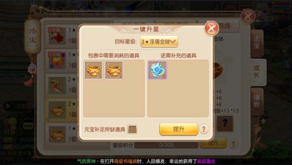 法宝系统是梦诛手游的一大特色玩法之一,同时也是提升人物战力属性的重要部分。法宝可以提升星级,也可以提升等级。 法宝等级提升较为便捷,只需消耗法宝经验丹就可以。但是梦诛的法宝有六大种类,法宝提升星级,需要消耗同种属性的法宝才可以获得星级提升经验值,而且同种法宝或、不同种法宝、等级相同或者不同的法宝在包裹中都不能叠加,使得各位少侠在提升法宝经验或者积攒法宝的时候,包裹就显得不够用,而且在操作上也非常繁琐,需要一个个吞噬,甚至有时候会操作失误,把高等级的法宝给吞噬掉。 在法宝升星系统上,兜妹深深的感受到了各位少侠的“怨念”,不过兜妹在这里要告诉各位少侠一个好消息,法宝一键升星系统即将开启,解放双手的时代马上来临,听到这个好消息,各位少侠是不是欢呼雀跃了呢~下面就让兜妹给大家介绍下法宝一键升星系统吧! 【法宝一键升星功能入口】 打开法宝界面,点击“成长”,再点击“提升星级”,在提升星级界面,原有的“特技预览”按钮上方可以找到“一键升星”功能。 【一键升星功能规则】 1、被作为材料消耗掉的法宝内的积分会被清空。为避免损失,需要注意升星时选择经验值为零的法宝材料。 2、一键升星优先消耗成品法宝,不足的部分再用法宝碎片补足。 3、8星及8星以上星级法宝不能使用一键升星。 4、一键升星不会用已经装备的法宝作为材料来升星。 5、浮屠金钵和獠牙无法通过元宝补足获得,其他法宝可以通过元宝直接补足缺失的道具。 【一键升星操作方法】 选中需要升星的法宝,打开一键升星功能。 1、选择需要升星法宝的目标星级,可以选择8星以下的星级。 2、选择目标星级后,如果包裹中升星道具足够,可以直接点击“提升”即可提升至目标星级。 3、如果包裹中升星道具不够,在界面右侧会提示还需补充的道具,可以选择补充的道具,提示获取途径,可直接购买。等道具补充完毕后,可点击“提升”按钮。 4、如果包裹中升星道具不够,也可以选择直接用元宝补足所缺道具,直接点击“提升”按钮。 以上就是法宝一键升星功能玩法介绍。梦诛手游倡导休闲玩法,体验社交乐趣,同时也非常人性化通过一系列解放双手操作,来减轻少侠负担,使少侠无压力畅游梦诛世界。 |