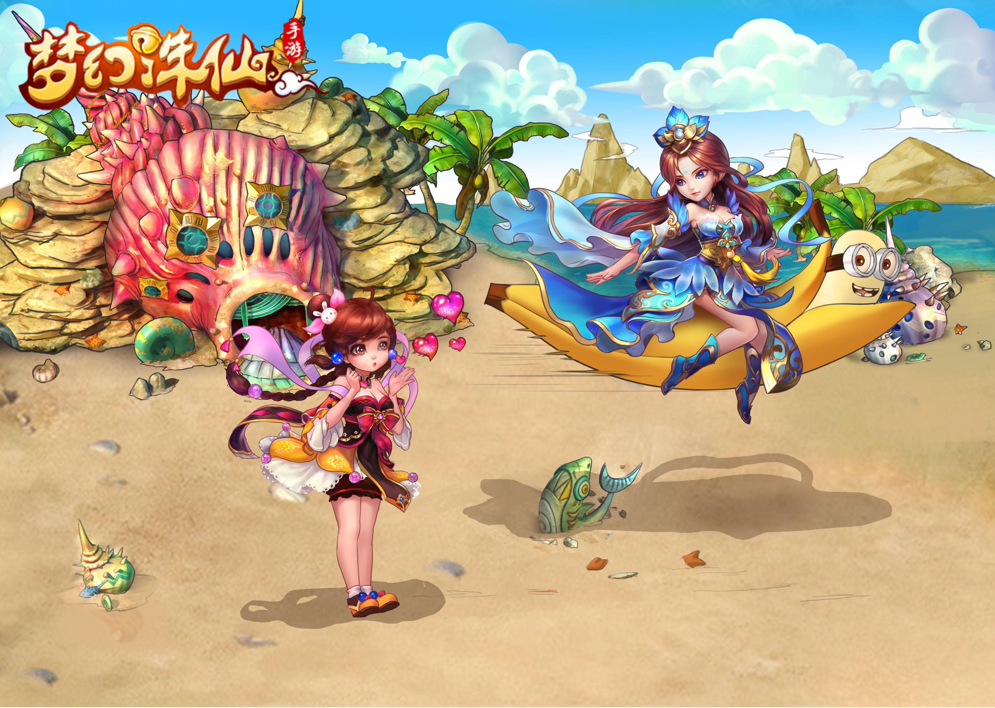 突然天上飞过一个香蕉,一个美女坐上面。