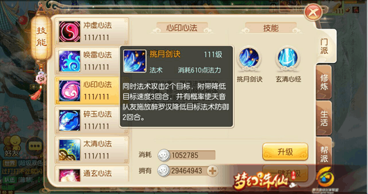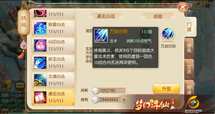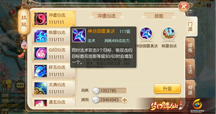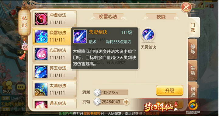 青云是天下正道门派之首,创派至今以有2000余年。青云门弟子善用高深莫测的道术,能够去驱役雷电,驾驭飞剑克敌制胜。数百年前,青云祖师传下的“诛仙剑阵”更是威力绝伦,为天下人所知。青云门擅长群体法术攻击,今天就带大家来领略一下青云道法的高深。 神剑御雷真诀:同时法术攻击3个目标,在门派技能为30/60级时增加一个目标。游戏发展至今,青云门“秒5”在8大门派群体法术中是闻名遐迩,无论是PVE或者是PVP战斗都是青云门核心输出技能,青云门的少侠输出能力不亚于合欢、焚香等门派。而且,作为正道门派之首,也应该要有匹配名气的实力~ 挑月剑诀:同时法术攻击2个目标,并且附带降低目标速度3回合。与门派心法无关,一直就是2个目标,大概也是秒5太厉害了讲究平衡才做成这样的吧。 连携技,可使友方天音寺队友施放醉罗汉降低敌方目标法术防御,持续2回合。这也就算是青云门的控制技能了吧,多用于PVP战斗给对方辅助门派减速,也是青云的核心技能。 天灵剑诀:大幅降低自身速度并法术攻击单体目标,目标剩余气血越少天灵剑伤害越高。这就是大家所熟识的“守尸”技能。在PVP战斗中,青云门招人讨厌的敌方就是这里了。倒下了你就起不来,就问你气不气!该技能可搭配轮回天书使用,杀死敌方后,随机一次法术攻击,伤害值与技能点数有关。 万剑归宗:青云门终极奥义,依次对5个目标造成大量法术伤害,使用后虚弱1回合,10回合内无法再次使用。个人理解就是一个收割技能,在残局时一个大招“5杀”有木有。Pentakill哟~ 那么关于这一期的青云门介绍就到这里了,在这里祝愿各位少侠游戏开心,生活愉快,我们下一期再见啦,88~~ 醉梦斋-诗情 更多精彩游戏内容,尽在TGL官方微博,快来扫描下方二维码加入吧! [编辑:GEM]