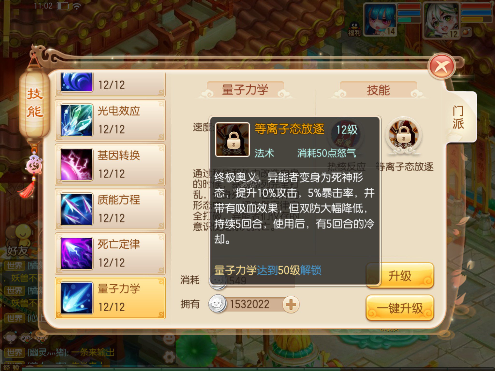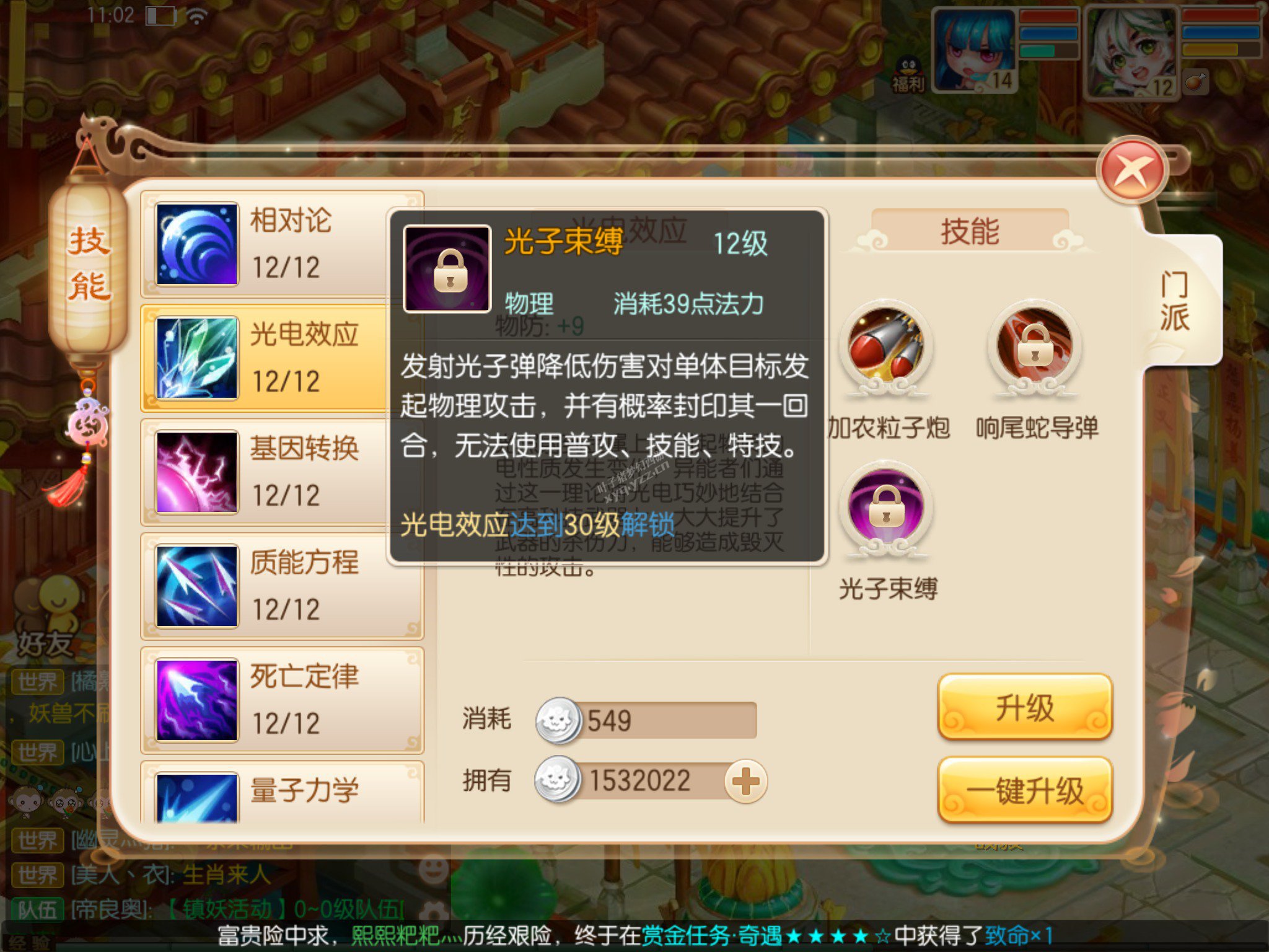 人品好的话,这个就是神技,攻击有几率封印一回合,不能使用普攻、技能、特技。看人品的技能,不过同时也表明了,异能者对速度的要求高于其他输出职业,特别是比鬼王要快,试下下,鬼王用大招点杀或者收割,但是被异能者限制了出手机会,甚至被反手点杀一波,那么就是翻盘的节奏,特别是像服战这种大型PK,一回合的变数就能改写结局。