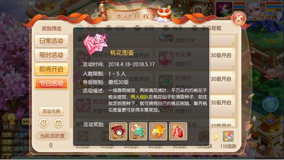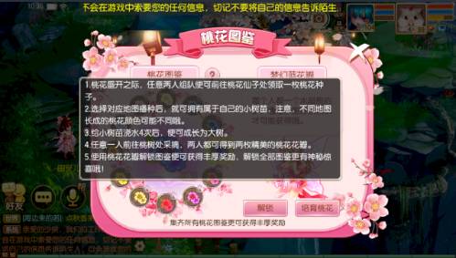 春雨轻抚过枝头,桃花悄然开放,携手与人共种植,获取属于自己的桃花。桃花要长成需要浇水灌溉,每人每天可获得四次浇水的奖励,待桃花树长成后便可摘取桃花(不同的地图种植出的桃花也是不同的哦)解锁全部图鉴后还有神秘的惊喜呢!