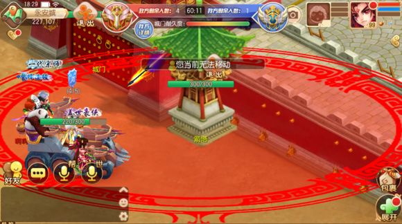 (1)城门胶着战:城门是双方互怼的第一战场。在这里攻守双方成员可以看到城门被破坏的程度,以及双方人数等信息。