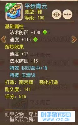 这双100级玉清鞋拥有极高的速度加成,加上封印特效,绝对是所有神威组方寸梦寐以求的极品装备。