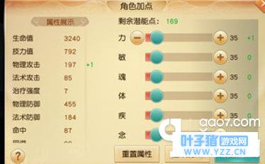 属性的加点一共是分为6中,力,敏,魂,体,疾,念。每一种不同的职业则有一种自己独特的加点方向。 下面小编就简单说一下这6种属性点分别代表着什么加成 力:物理攻击力 敏:命中,会心一击 魂:法术攻击力 体:提升物理防御力,生命值以及对眩晕、郁气、盲目抵抗力的属性 疾:增加回避和对定身、缓行、迟钝抵抗力的属性 念:增加法术防御力,技力值,施法保护率,会心防护率以及对催眠、失忆、暴怒抵抗力的 属性 属性加点:那天机营作为肉盾的近战物理职业,小编这里建议,体,首先肉盾的职业,生命值,各项抗性,已经防御力都是必不可少的。如果没有这些抗性,本身,天机营的技能输出就是比较乏力,在没有防御与血的支撑,在团队中的根本站不住脚起不到哪种吸收伤害的作用。 喜欢暴力天机的玩家可是全力量加点,这样就可以再战场上保证输出最大化。但是不足的就是比较脆皮。