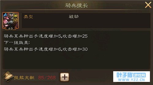 驱逐鞑虏岂能无马?毫无疑问霍去病在西汉时便是骑兵达人,在《布武天下》中也保留了这一特性。他的两个被动技能皆和增强骑兵属性有关。