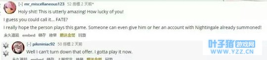 我觉得这或许就是……命运(FATE)吧? 我希望你能玩下fgo,肯定有玩家愿意为你提供一个有南丁格尔的初始号!”