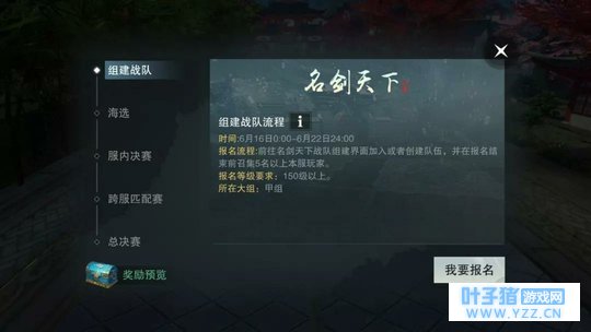 各位少侠看过来~ 现在进入游戏点击【名剑天下】按钮 即可进入报名页面!