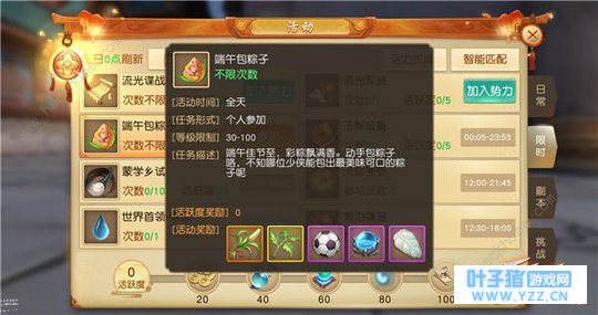 【端午佳节,粽香飘飘传万里】 没有粽子哪叫端午节?一起来《天下》手游欢乐包粽子吧!用一场趣味2048小游戏完成香气四溢的美味粽子,从米粒到饭团,到各种口味美味可口的香粽,只需你灵巧的手指轻轻滑动手机屏幕即可顺利完工。轻轻松松即可获得头像框和特殊称谓等精美好礼。 粽子包太多吃不完?不如去九黎送给淘气又可爱的男孩子小秋,陪孤单的小秋一起玩耍嬉戏,增加好感度还可解锁小秋神秘而温情的日记,并获得精美道具大礼。当然,善良好心的少侠若赠与小秋端午粽子,还会有月钻、灵曜锥甚至雷钻好礼呢!