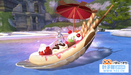 [香蕉船儿晃晃悠悠 带“你”离开燥热的七月蝉鸣] 天太热,蝉太噪?来一碗美味甜品平复一下吧!全新冰酷坐骑“香蕉王国”主体的香蕉船上躺着一把精致的小伞,侧边两个美味的冰激淋甜筒更是将热气逼退三尺,不用想,夏天乘坐它一定是个非常棒的选择!