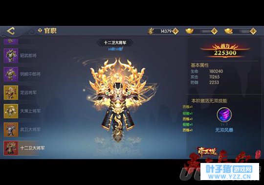 官职晋升还将为玩家带来诸多战斗方面的提升。每晋升至下一级官职,玩家角色都将获得大量属性加成,同时还会激活新官职专属的无双技能。无双技能可由玩家在战场之上择时机主动释放,不同技能具有不同的特殊效果,随着官职晋升技能威力也将大幅提高。无双技能可对群体目标造成十分可观的范围伤害,让玩家充分享受沙场之上以一敌百的无双战斗乐趣。