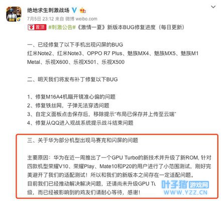 华为GPU Turbo机型吃鸡手游遭遇花屏,玩家表示很崩溃!