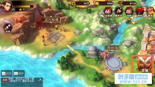 点开《群英天下》主城图片右下角“灵境”,就进入游戏的征战系统。值得一提的是,与其他游戏强迫性、固定性的地图系统相比,《群英天下》半自由制的探险模式令人眼前一亮:在每一关卡的地图内,玩家在不断击败敌人后,可以获得越来越多的自由行动范围,也就是可以自行探索地图,地图各地都放着不少好东西,逛遍地图会有不少收获,还可能触发意外的剧情呢!