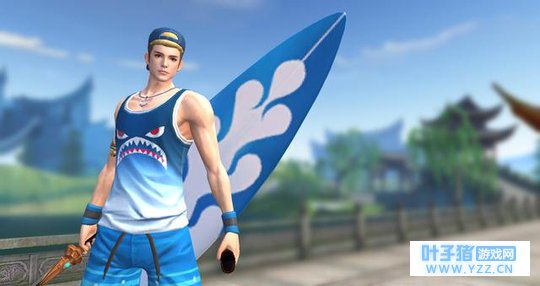 相对来说,男性角色的时装造型就显得更为简洁和个性化了。弈剑小哥哥背心上的臭脸鲨鱼十分魔性,保准一上身就是全场的焦点,而且还能假装不经意间露出那结实的完美肉体,嘿嘿嘿~
