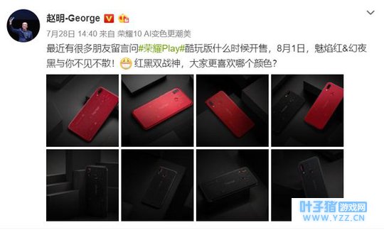 麒麟970荣耀Play酷玩版重磅来袭!红黑战神魅力挡不住