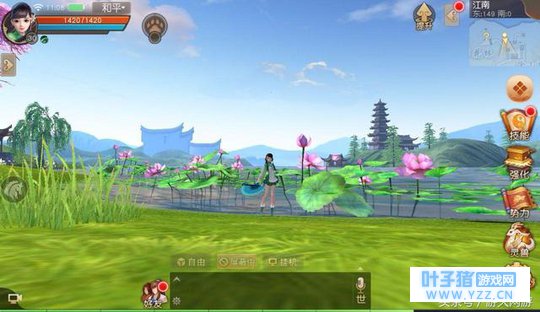 TOP1 江南 青山隐隐水迢迢,秋尽江南草未凋。俗话说江南好风光,大荒里的江南,有意境深邃的亭台楼阁,也有惊涛拍岸的流云渡,还有春意盎然的桃李花林,将小桥流水人家的意蕴完美的展示出来。学习了轻功之后,帮忙送信的途中遇见这副美景,远处的高塔与近处的荷花形成了一片美景。朴素平淡中,展现出了中国古典美学影响下的诗性情怀。