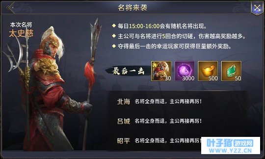 新型国战 逐鹿中原 【看点二:特殊产业,名将来袭】 世界采集中,普通的产业有粮草、木材、生铁,而在公测版本中,玩家可以在野外发现一些特殊产业,并采集许多稀有材料,如计策碎片、升星石、建造加速等。除了特殊产业外,每天都会有一位名将在附近城池出现,参与攻打名将,能获得大量金银财宝,根据伤害量排名,伤害越高奖励越多,如果是打败名将的最后一击,那么还会获得额外的丰厚奖励。